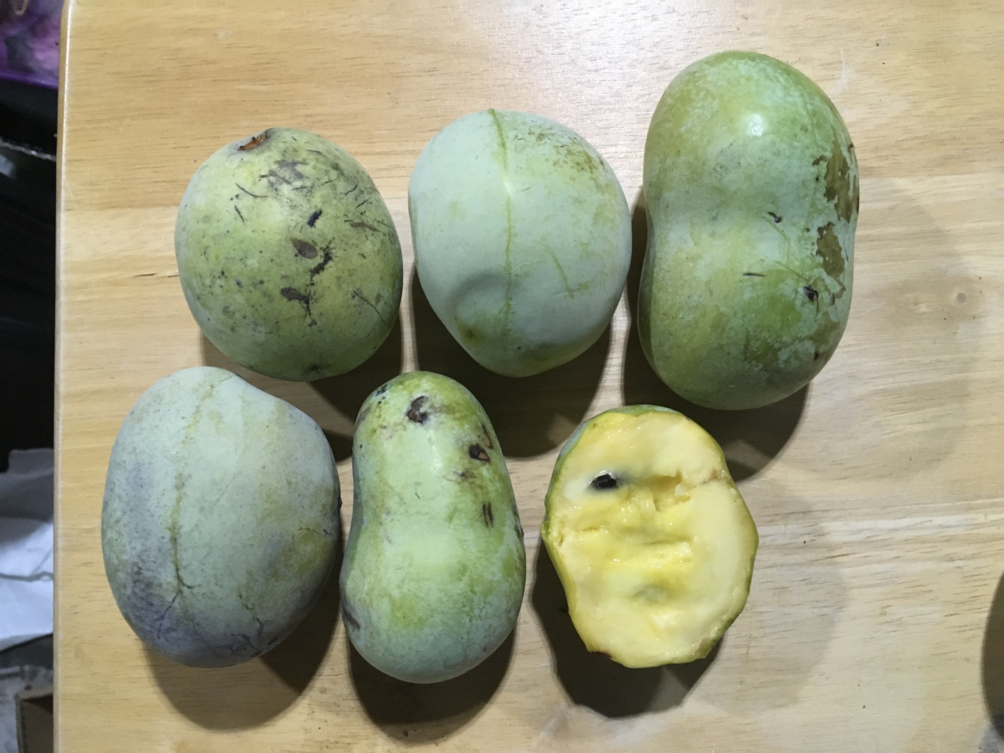 This year my Shenandoah pawpaws decided to ripen all at once. All dropped on the same day, 9/25. Only a couple of Mango are still hanging on.