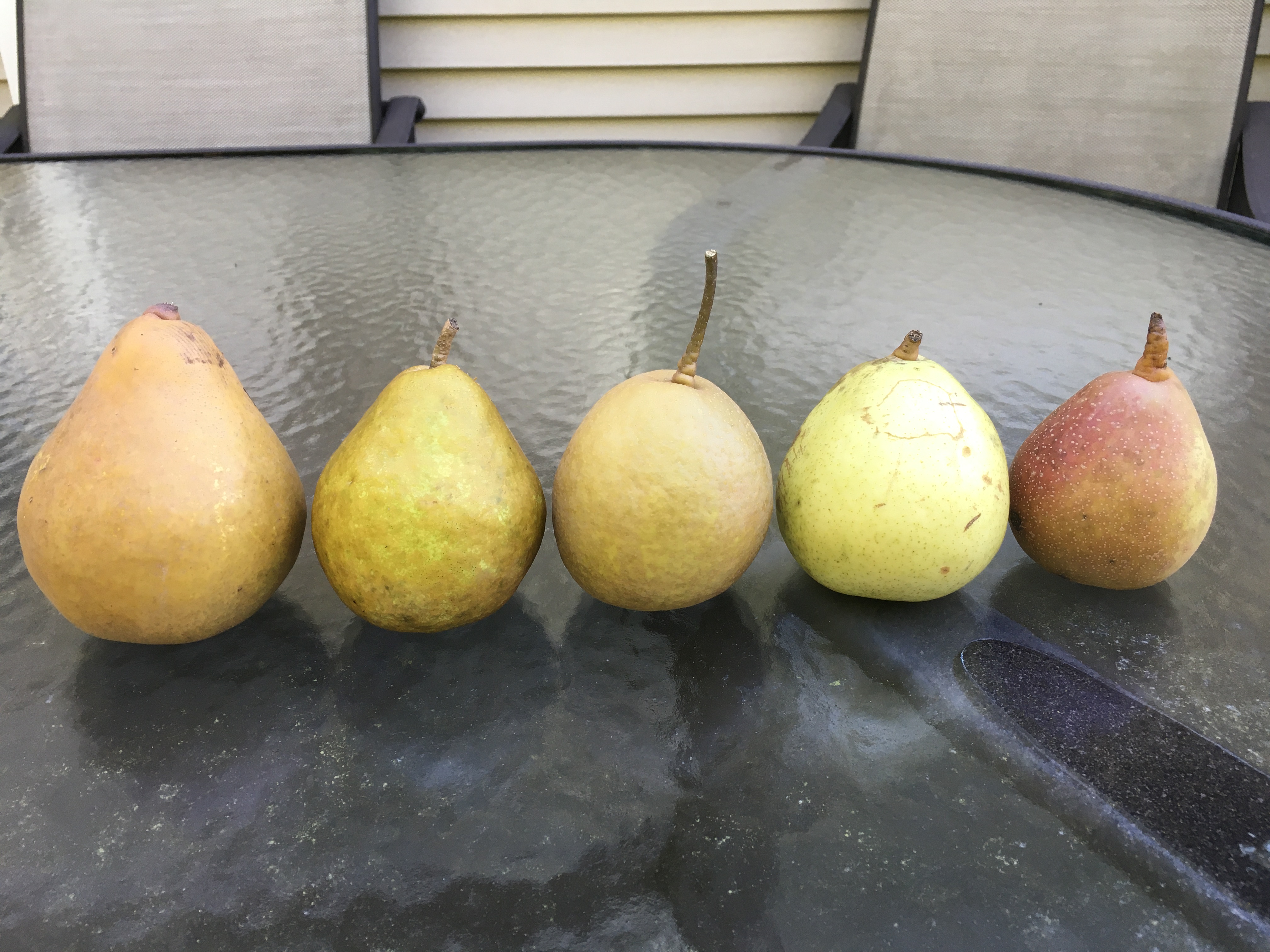 Douglas should be ripe but it’s not ripe yet. Odly I have one Harrow sweet tree not ripe yet. One tree of Harrow sweet I picked a long time ago. Winter has been hanging on more in recent years in Kansas causing delayed fruit ripening and other problems. Korean Giant , improved Kieffer, Duchess D’angoulme and Douglas are all still ripening. Korean Giant has lots of rotting this year. Here are some photos Got a fruit tree heavy with fruit? Post it!