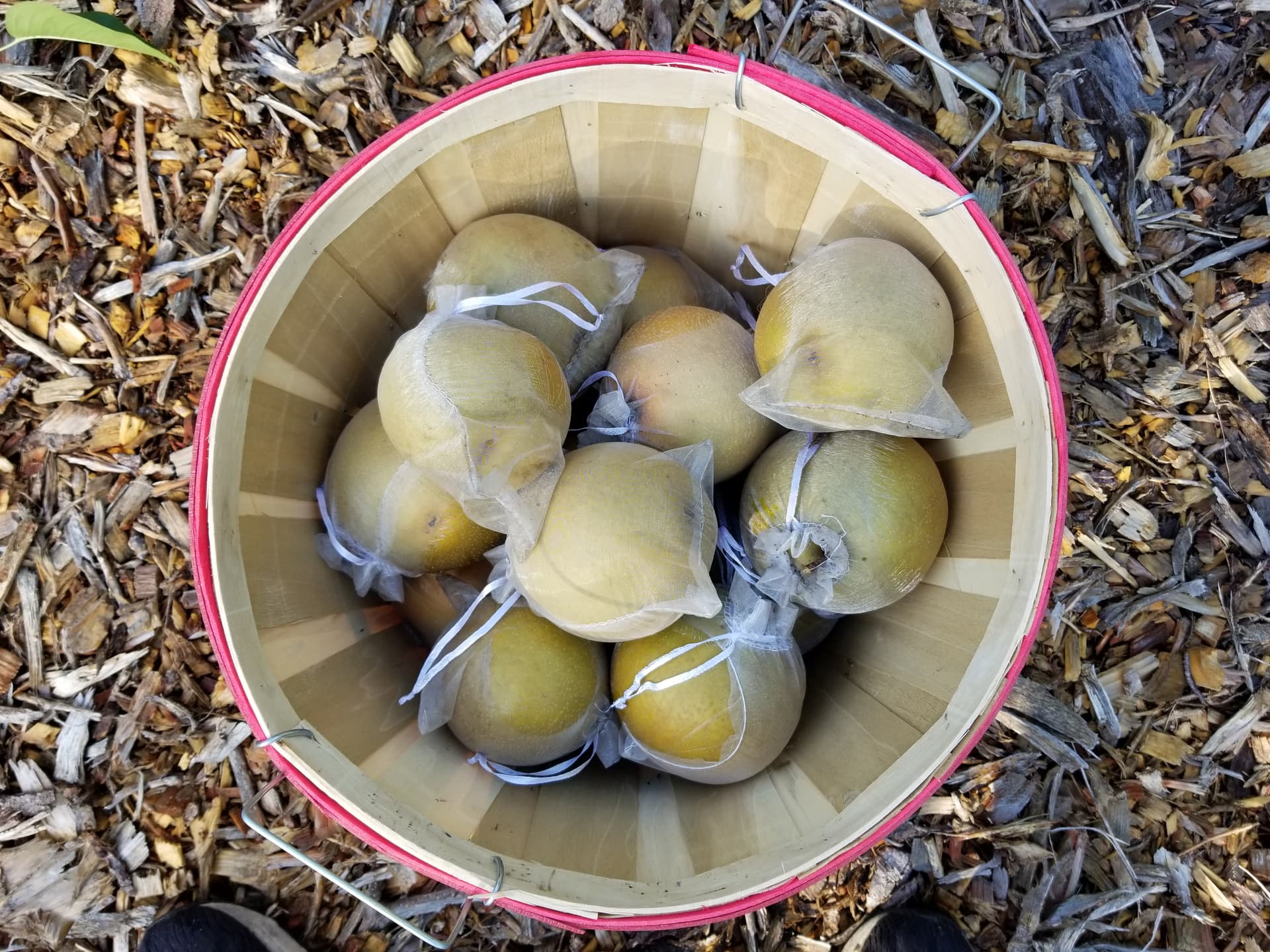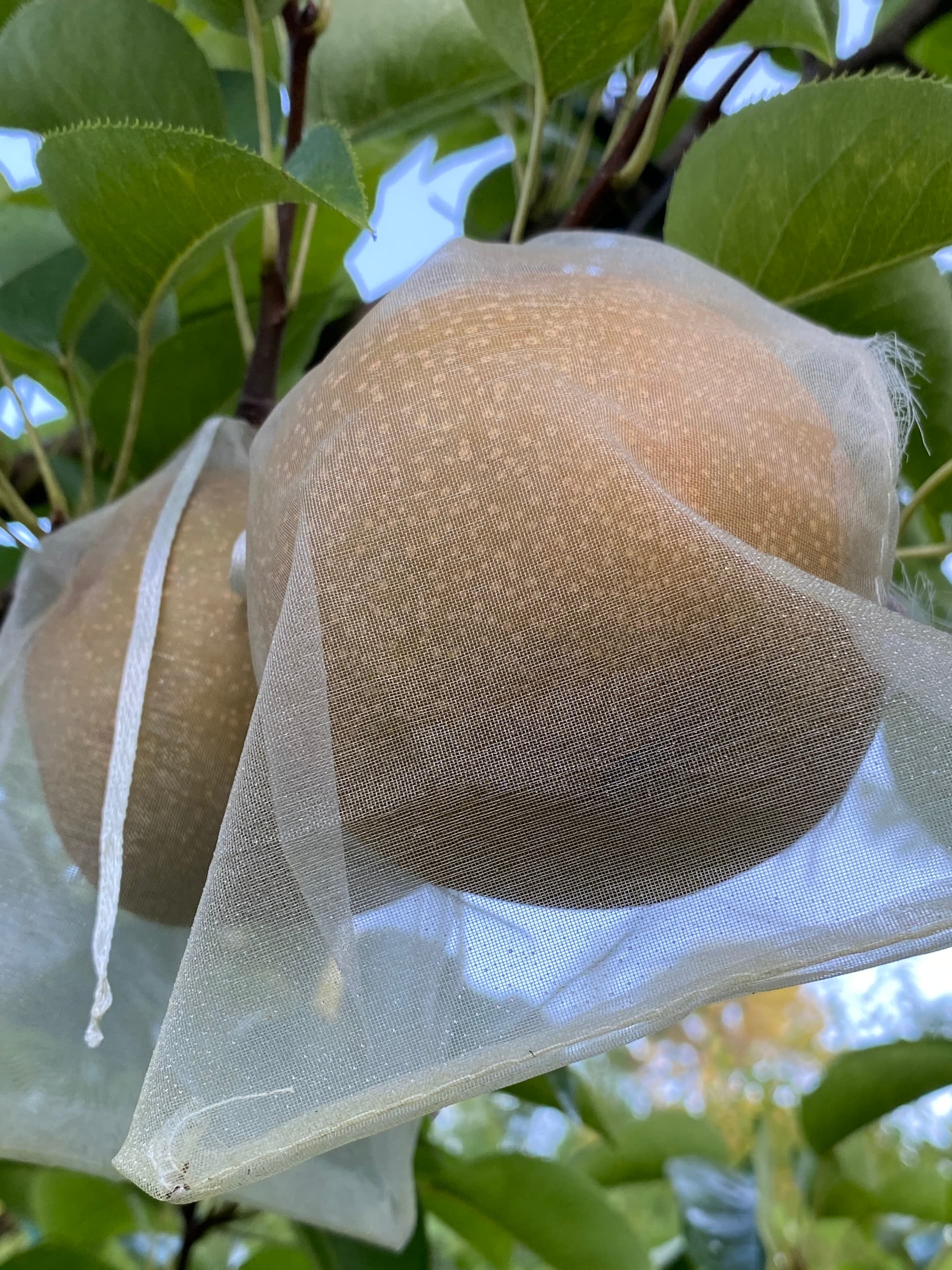 That was 2 seasons ago. Last year didn’t bag and realized that if I get my sprays in early, neem and BT they stay bug free. From this point forward I dont need to spray the pears anymore until next year.