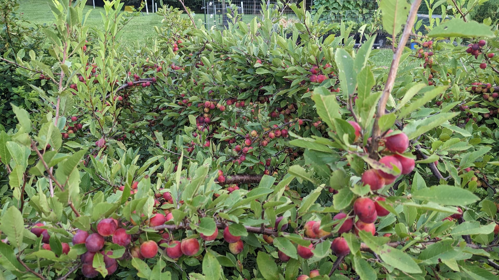 I got a DM question from someone here about whether I would have seed or scions this fall and winter. I do not anticipate having any Scion wood quite yet. I actually didn’t get any takes of Jersey Gem, so i’m hoping someone here can supply me with a stick or two at some point. I am already harvesting seed this season and plan to send it out in the fall, prior to stratification, as I believe I have been having problems with seed stratified in my garage refrigerator freezing over winter and reducing the germination rate. I expect to have seeds from my best Beach Plum which is shown above, Plus a ecos Beach Plum which is also shown above, as well as some seed from a wild goose plum. The wild goose is in my front yard and is probably pollinated either by my beach plums or by one of several ornamental plums nearby. Pollination on the wild goose was really interesting this year in that two or three branches were full of plums , But the rest of the tree only had a few in random places. My hypothesis is a single bee that had already visited one of my other plum trees was probably responsible for each of those heavily pollinated branches, but who knows for sure.