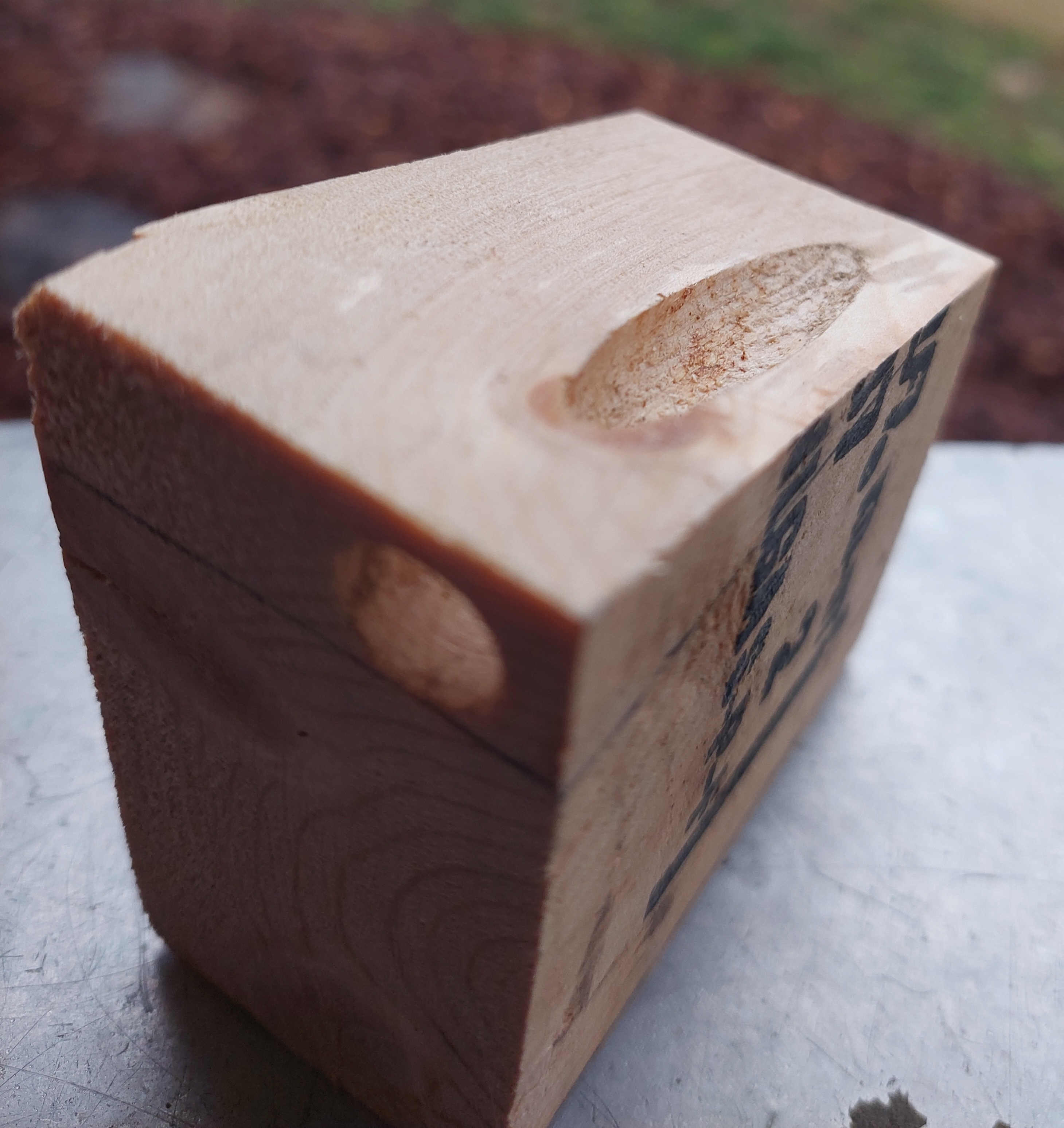 That looks pretty much perfect to me… I once upon a time tried similar, with a chisel, a fairly sharp chisel… Difficult, didn’t like the results, went back to a knife alone… Drilling the slanted hole close to the edge of a block of wood, where a util knife blade can reach, I like the looks of that!