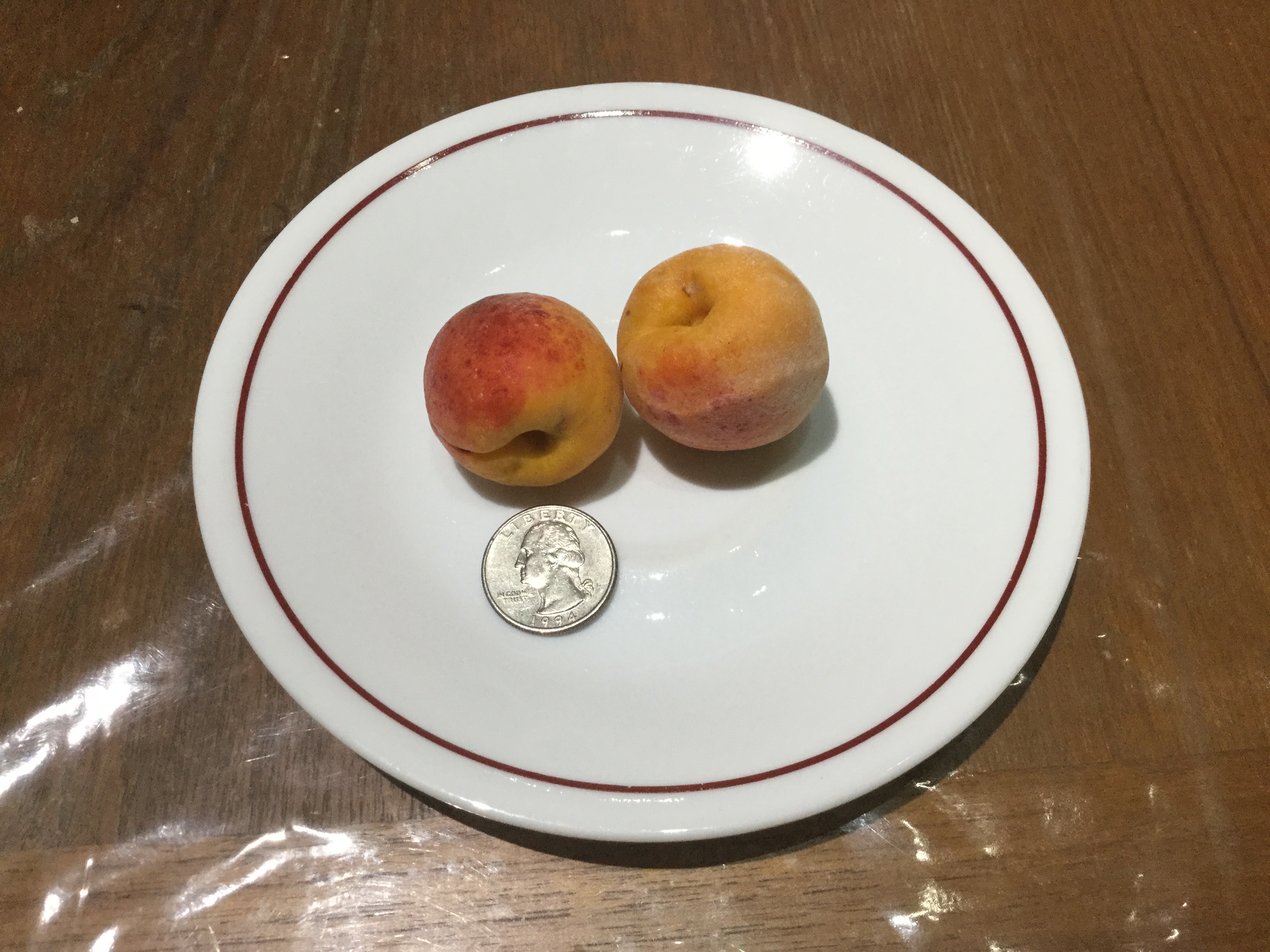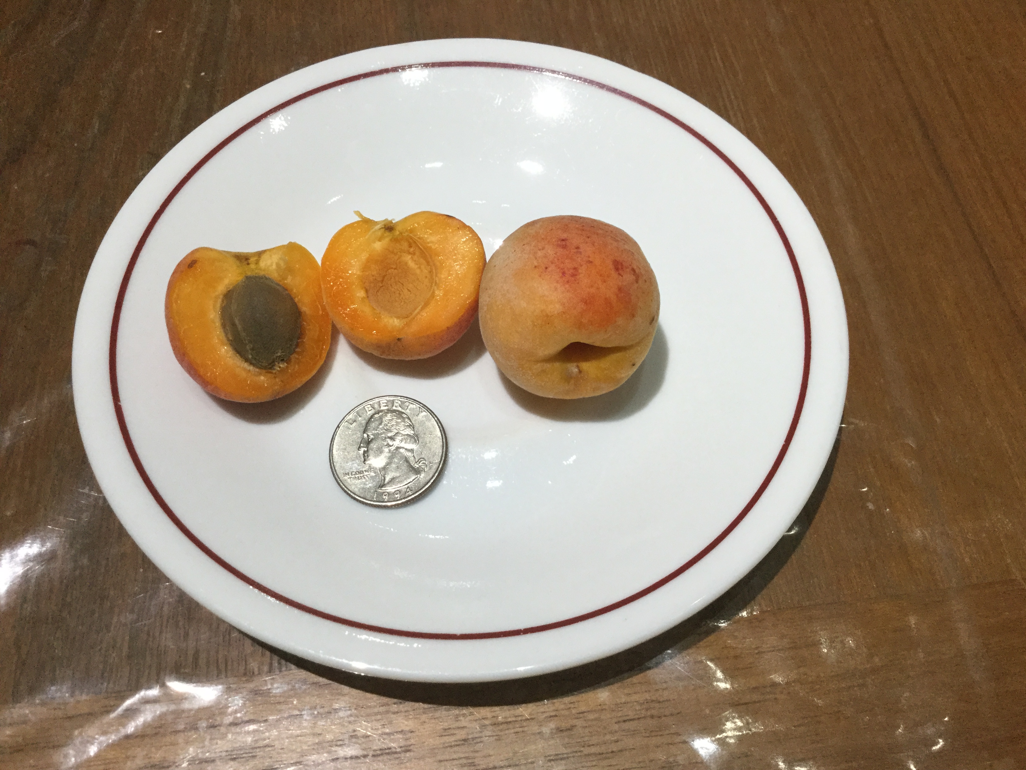 They were over ripe. However, they tasted very good even with very soft texture. Skin was a bit thick. Picky eaters may want to peel it. Both were sweet and I detected some aroma. Brix was 17 (the cut one) and 18 (the bigger one). They were nice size for apricots at 2.5 oz.