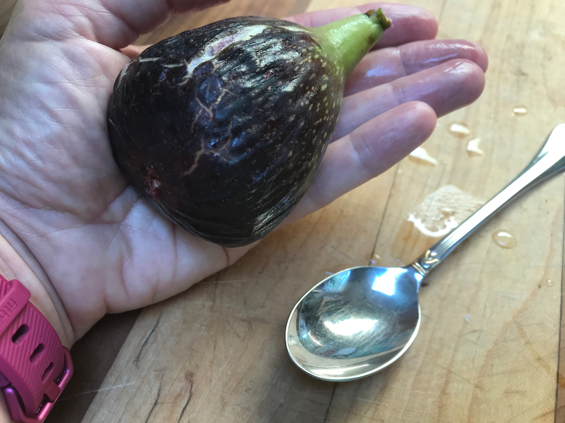 I asked our air b&b host about the figs and she said they reminded her of figs she used to pick as a kid in Italy. She also said that these are the first figs of the season to ripen and later in the season, there will be a dark purple one which is much sweeter, but smaller.