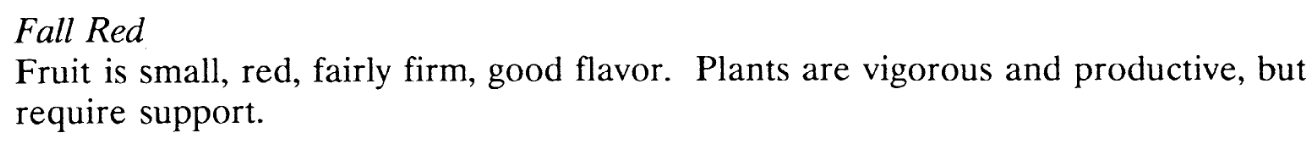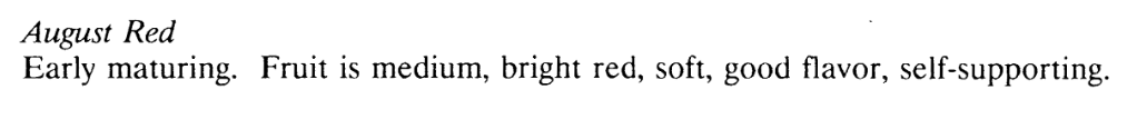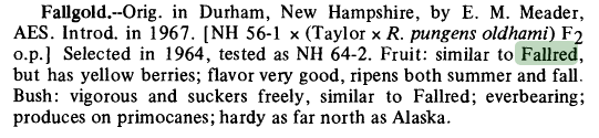 Elwyn Meader created a red rasp called Fallred in 1964 and August Red in 1973. The naming of Fall Red by Stark and Shumway never led me down the path of Fallred.