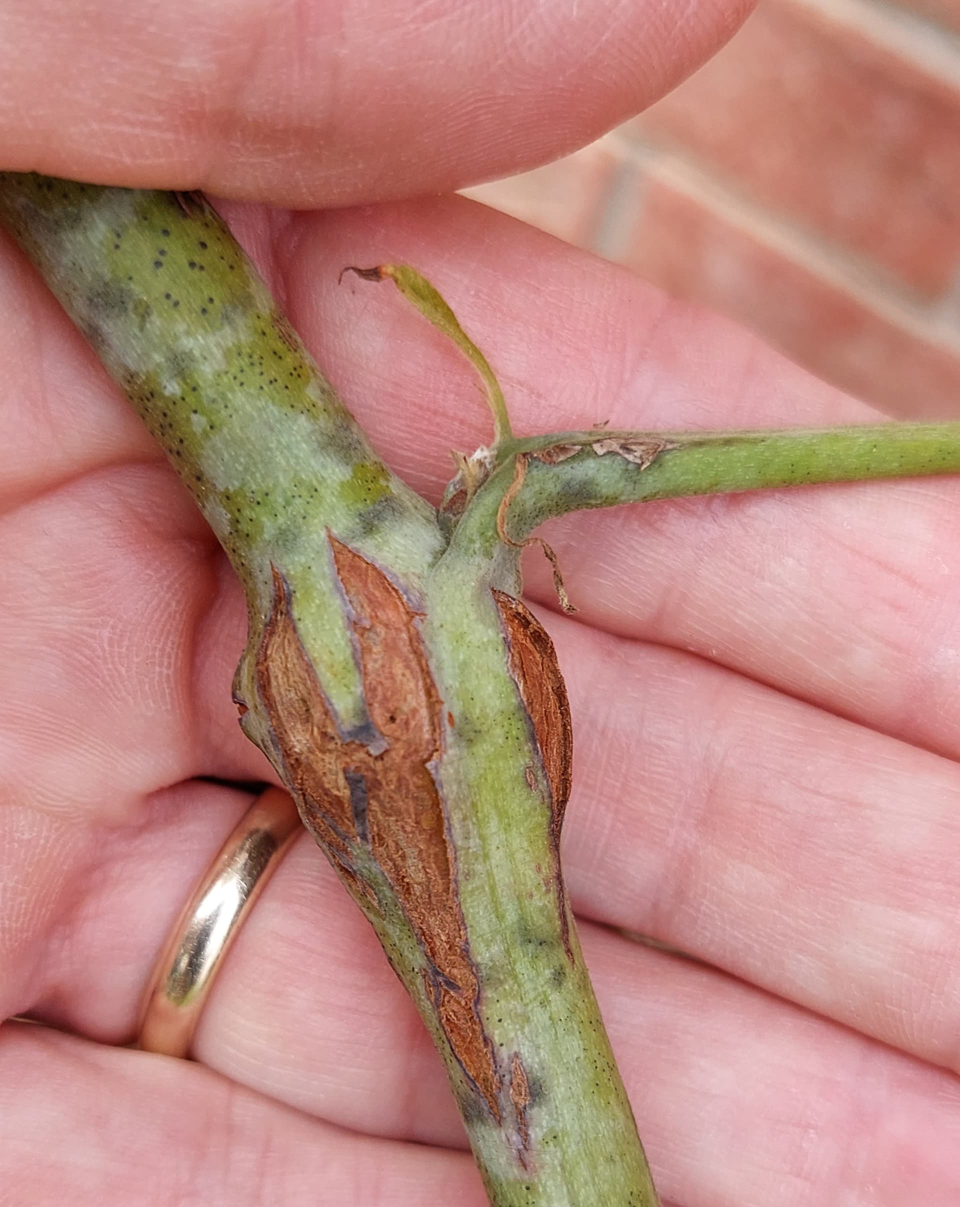 I think my best bet may be to cut off all that new growth including those cane borer swells… and leave the short pcane stubs (with no sign of borers)… and let them push out as much pcane as they can between now and November.