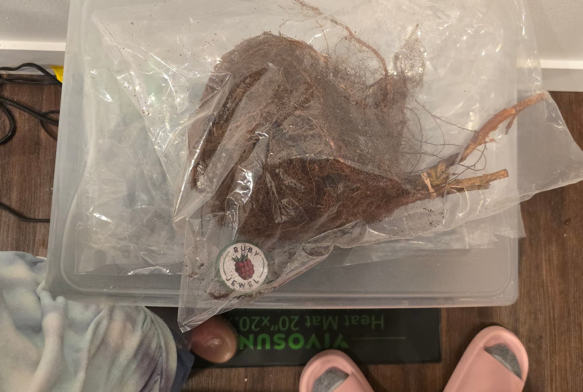 Ruby jewel from innovativeorganicnursery.com , 3 canes. If spread out, one has enough roots to fill a small tote