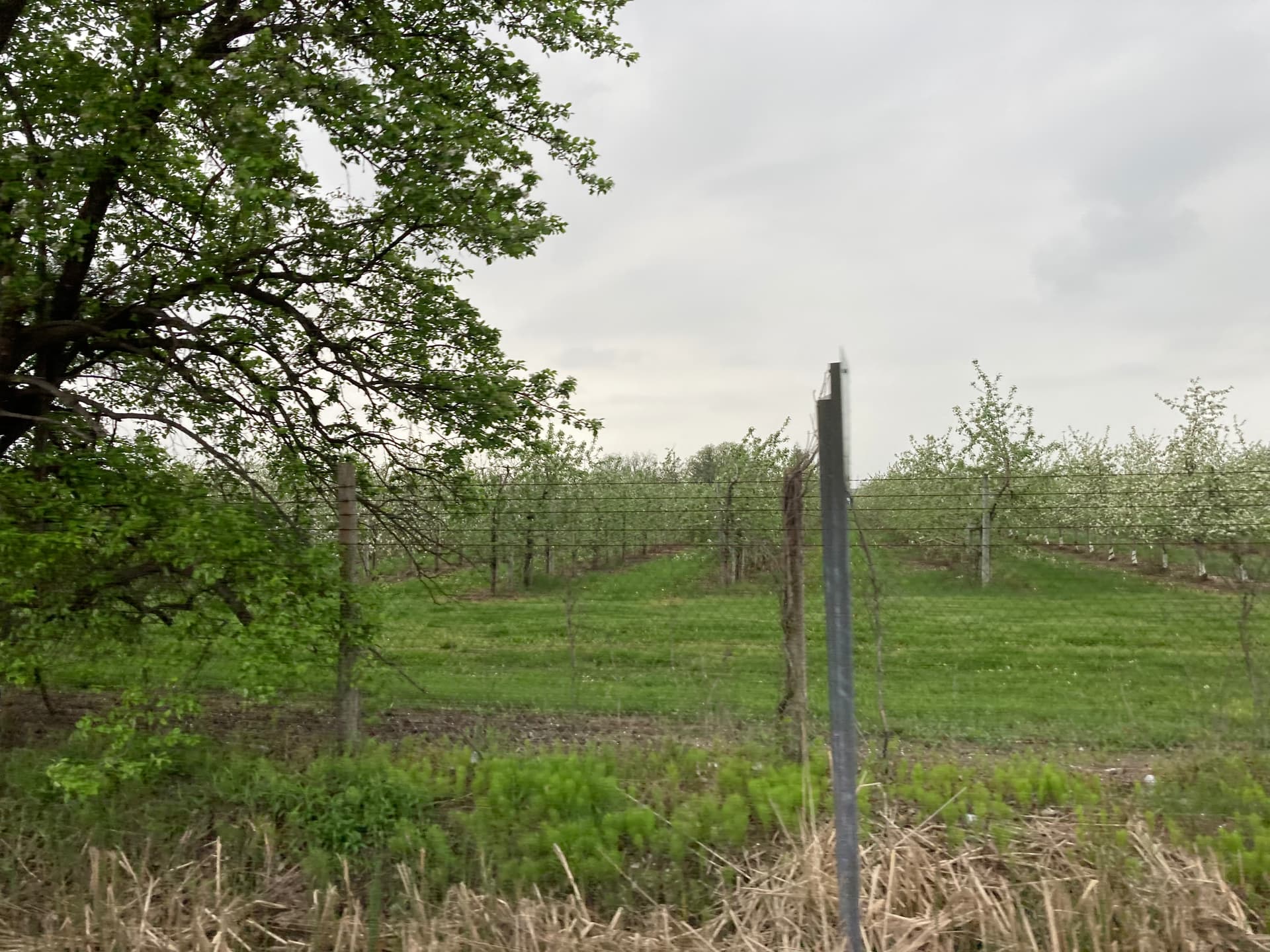 They have pedestrian orchards with trees about six feet tall. Thousands of them! Rows are about a 1/4 mile long. With at least 50 rows. I didn’t have time to stop, wish I did the apples are in bloom. I took some photos from my car, I’ll take more when I pick apples in the fall.