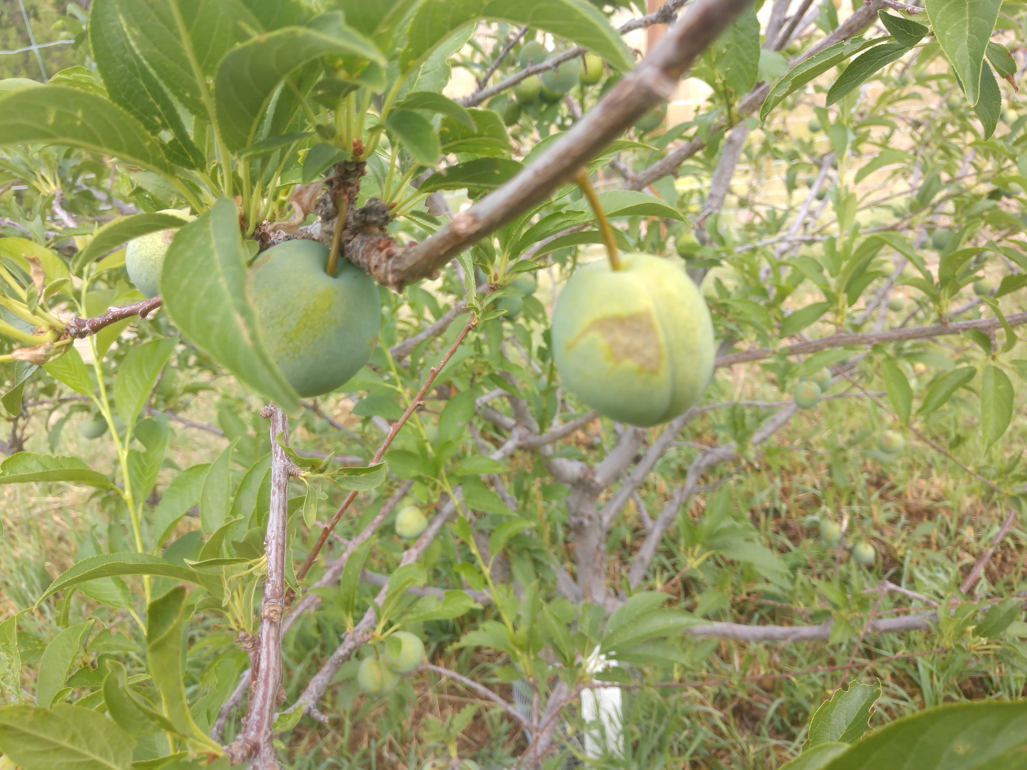 Here is Taos New Mexico my plums about abut 6 weeks from ripening. These are blemishes on most of my superior plums and a few of my toka plums. Any one know what might cause this? Thanks Peggy