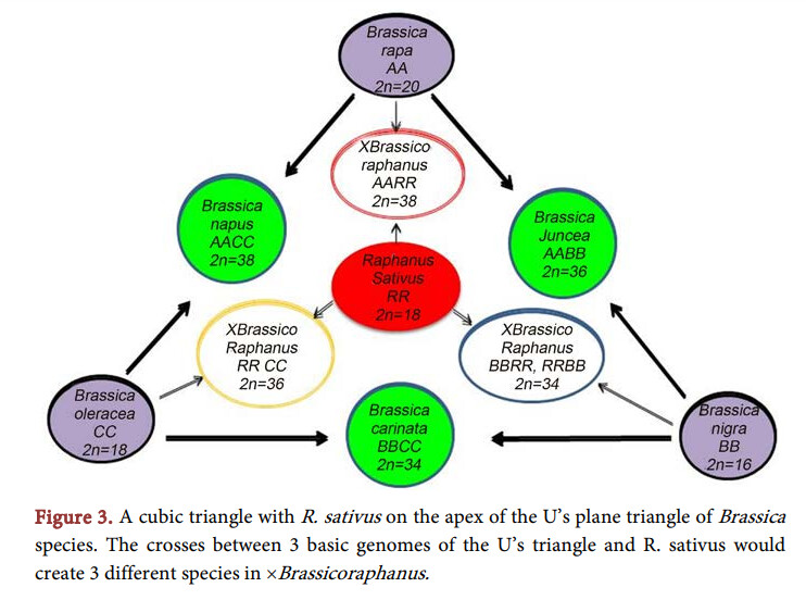 If you look at the chromosome numbers of the three green species in the diagram you posted, you’ll see that they are amphidiploids with a full set of chromosomes from each parent. Normally when you cross a species with 18 chromosomes with another that has 20, you’ll get progeny with 19 chromosomes that may have fertility issues. If the chromosomes are doubled, whether artificially with colchicine/oryzalin or spontaneously, you get 38 and theoretically no mismatches during meiosis.