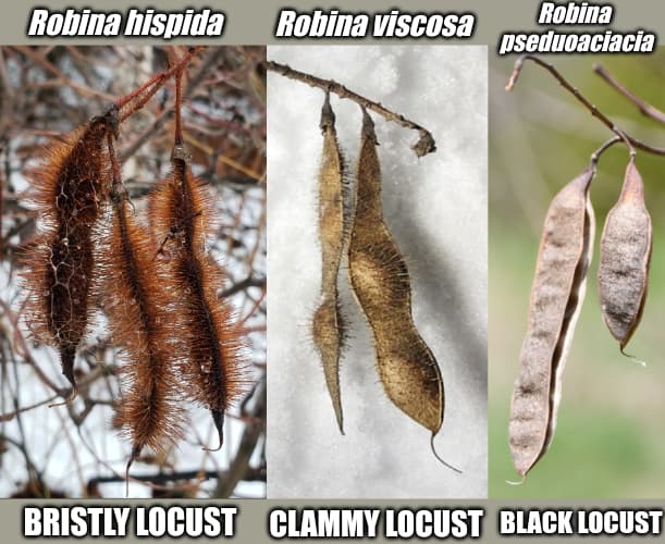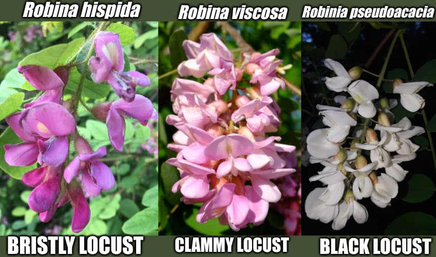 Indeed altho I think of the entire Robinia genus as a species complex of Robinia pseudoacacia, since they all easily & readily hybridize. I suspect many species are actual hybrids between White & Pink flowered Black Locusts, In particular Clammy Locust (Robinia viscoas) looks intermediate of R. pseudoacacia x R. hispida, almost as if a Naturally occurring Hybrid became a species. Indeed, the Pink Flowered Black Locusts have bristles but the traits are very fluid depending with lots of inbetweens. I mean just look, I’m not the only to notice right?