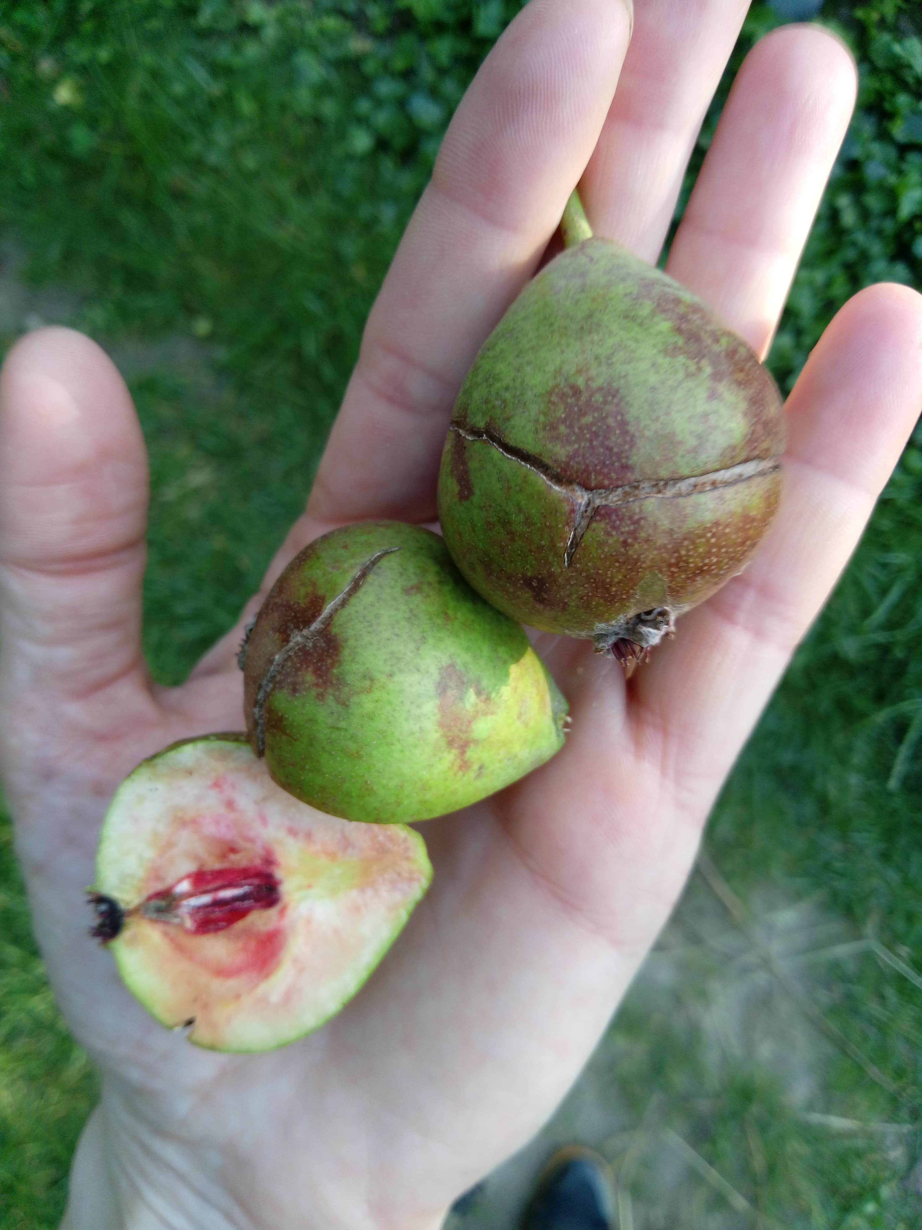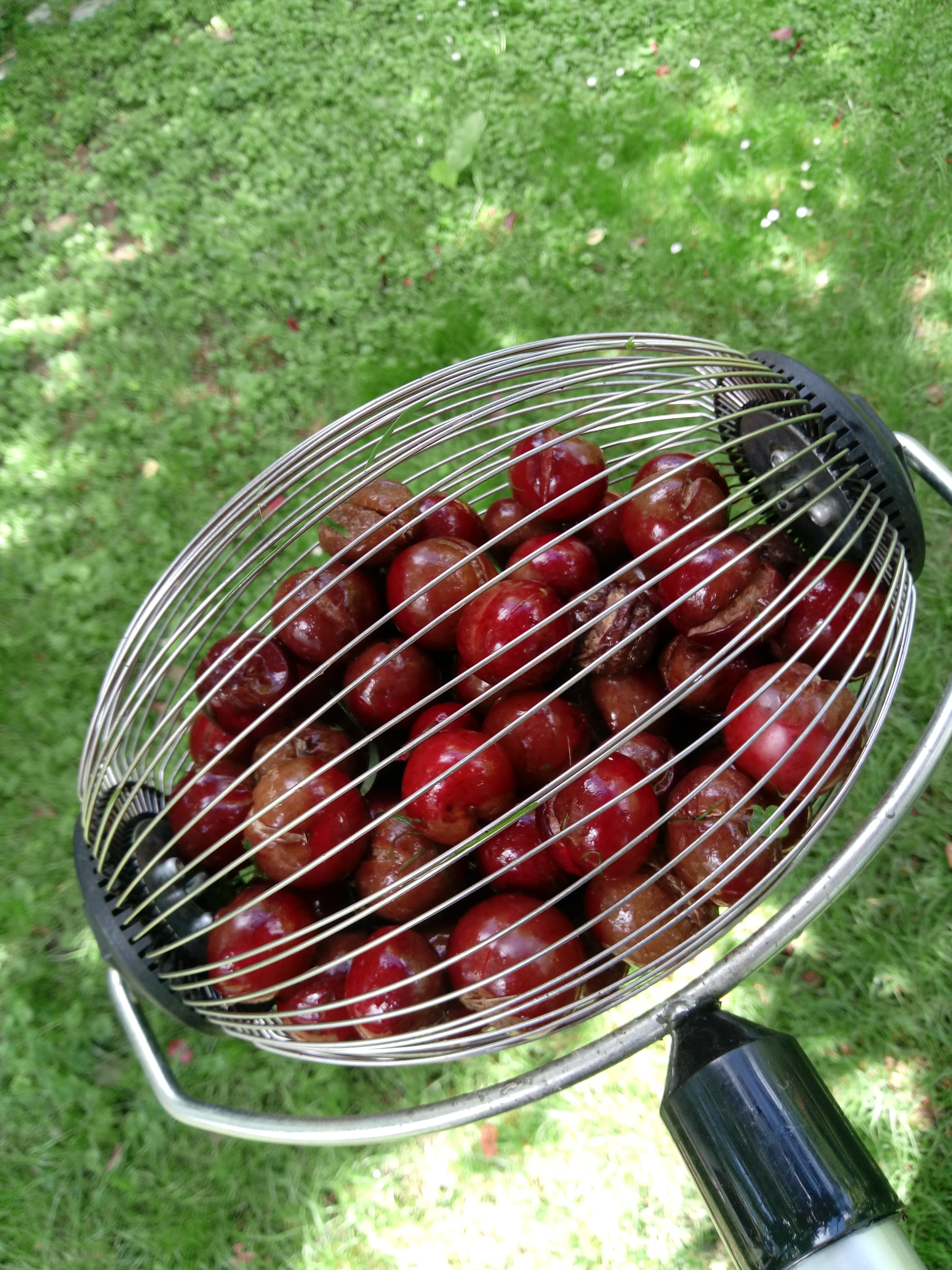Hollywood J plum seem to like these rains just as much… This is the 3rd lot of split fallen plums in two days. All is not lost, though. The fruit on one overloaded branch (suspended on a pergola) apparently does not get as much water as thinned branches so it will hopefully hold until ripe.