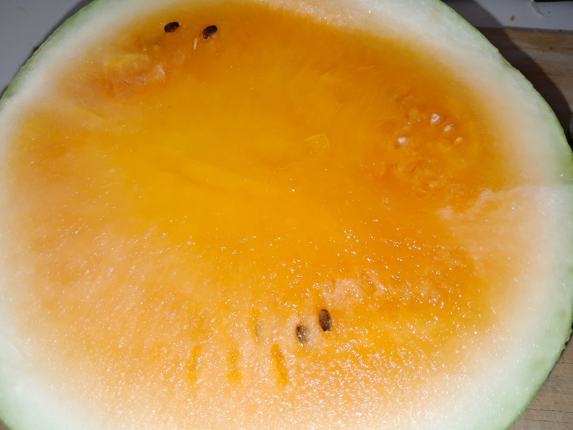 Ate my last watermelon today. I picked it about 3 weeks ago and left it out a bit forgotten. Still tasted nice. First year growing Orange Crisp.