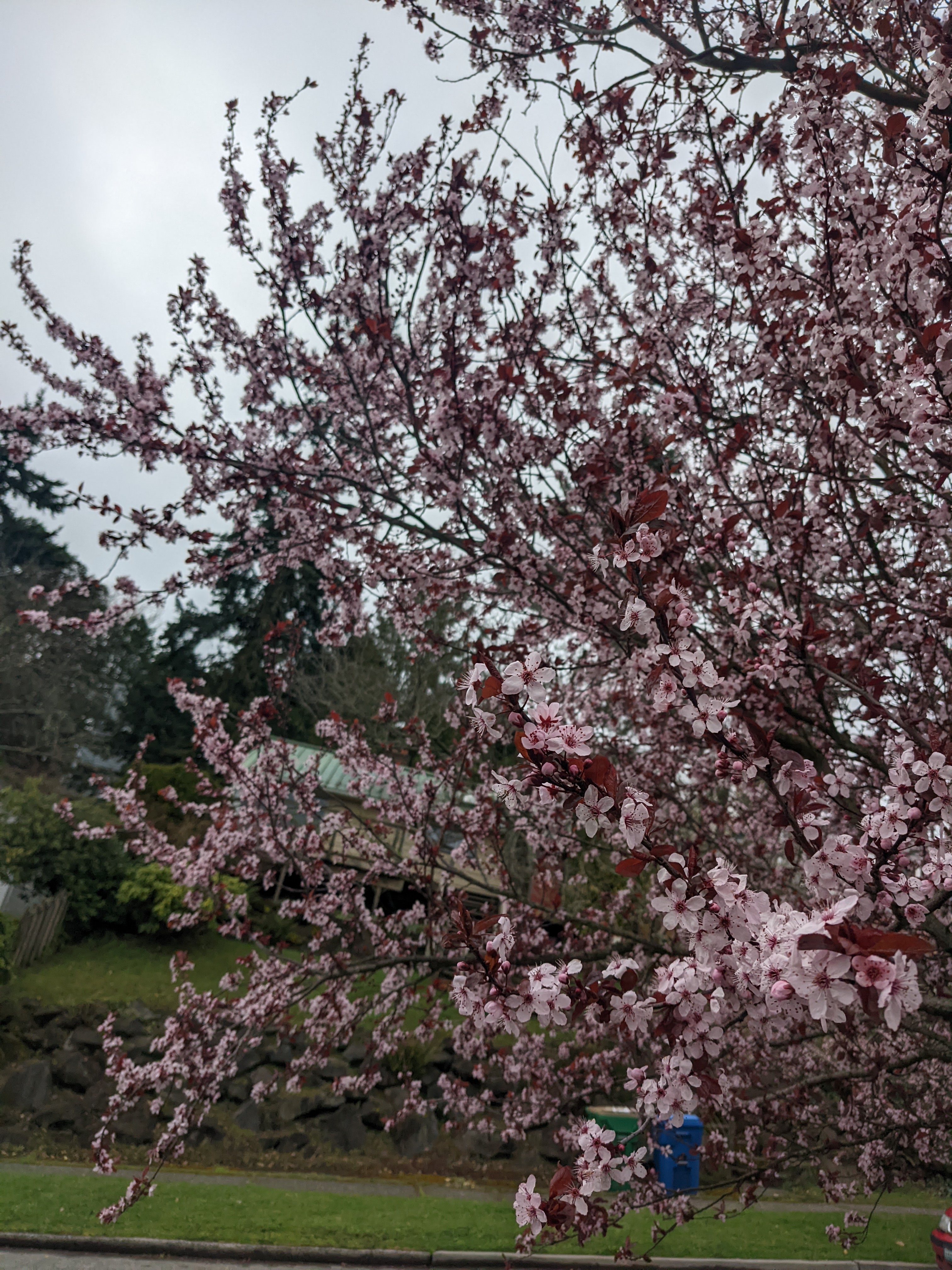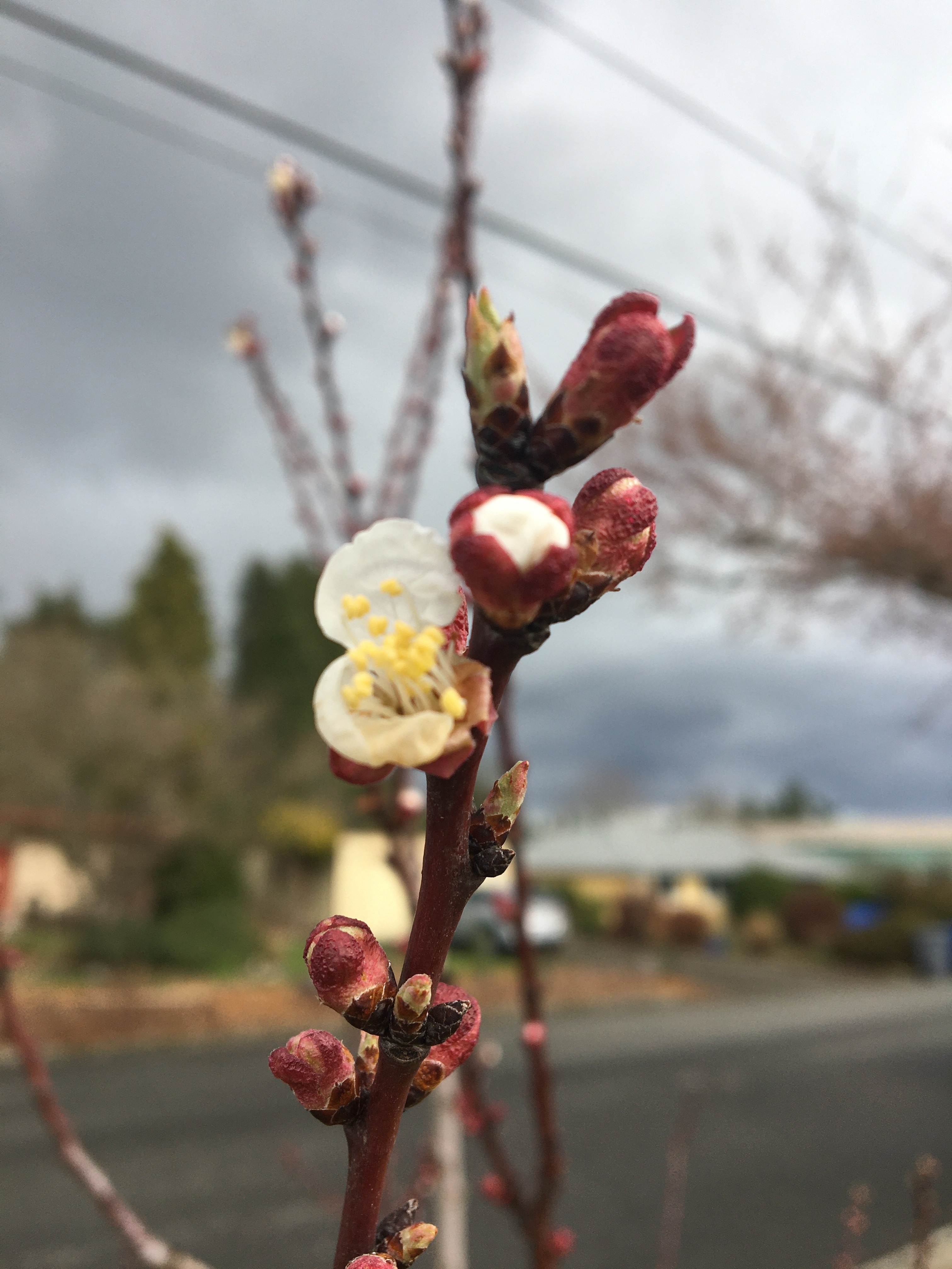 First fruit related flower in our yard is open today, on our puget gold apricot. I could have sworn the satsuma plum was going to beat it.