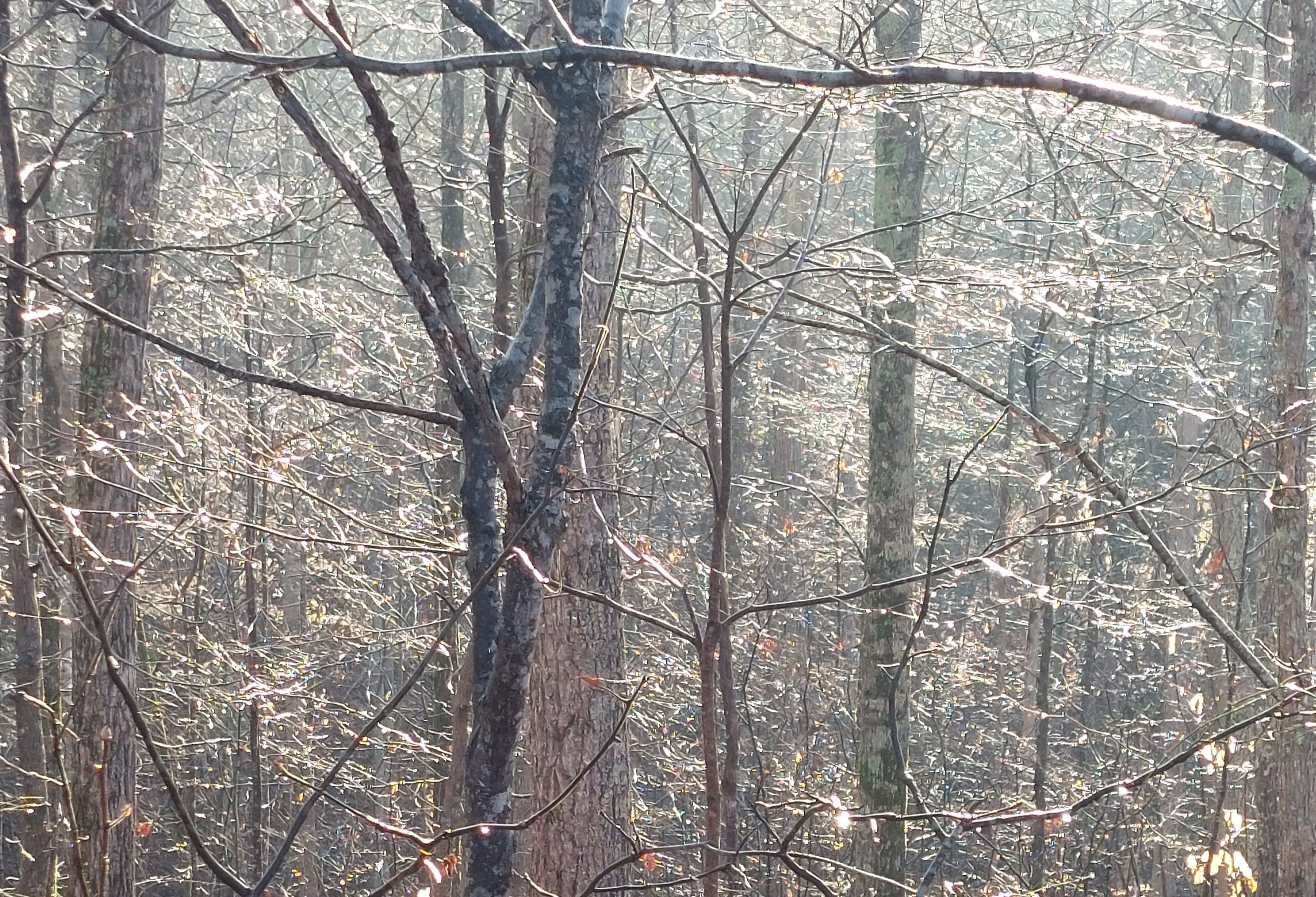 This is just a pic of sunrise reflecting off dew drenched woods here in TN this morning.