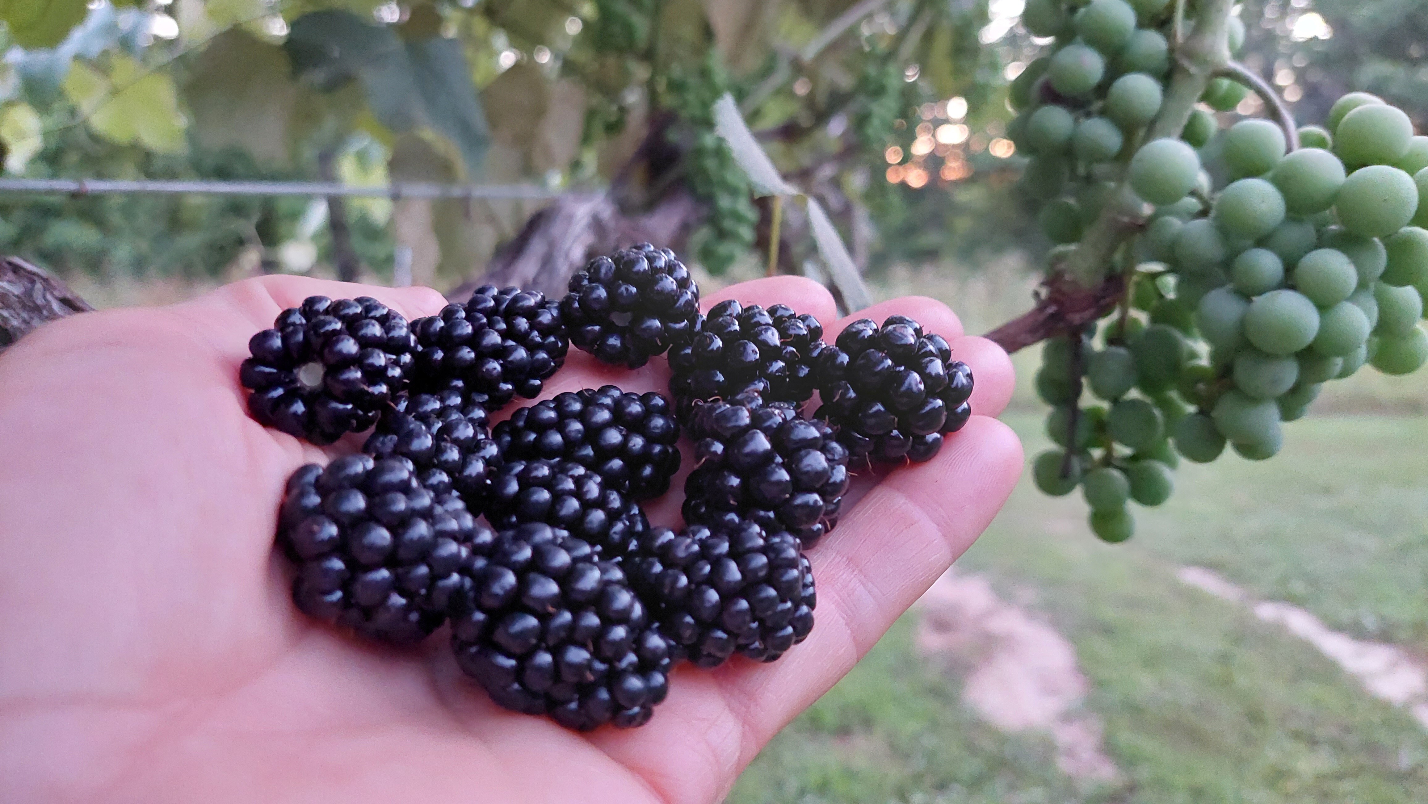 I picked a few more illini blackberries this eve… and watered my new okra starts.