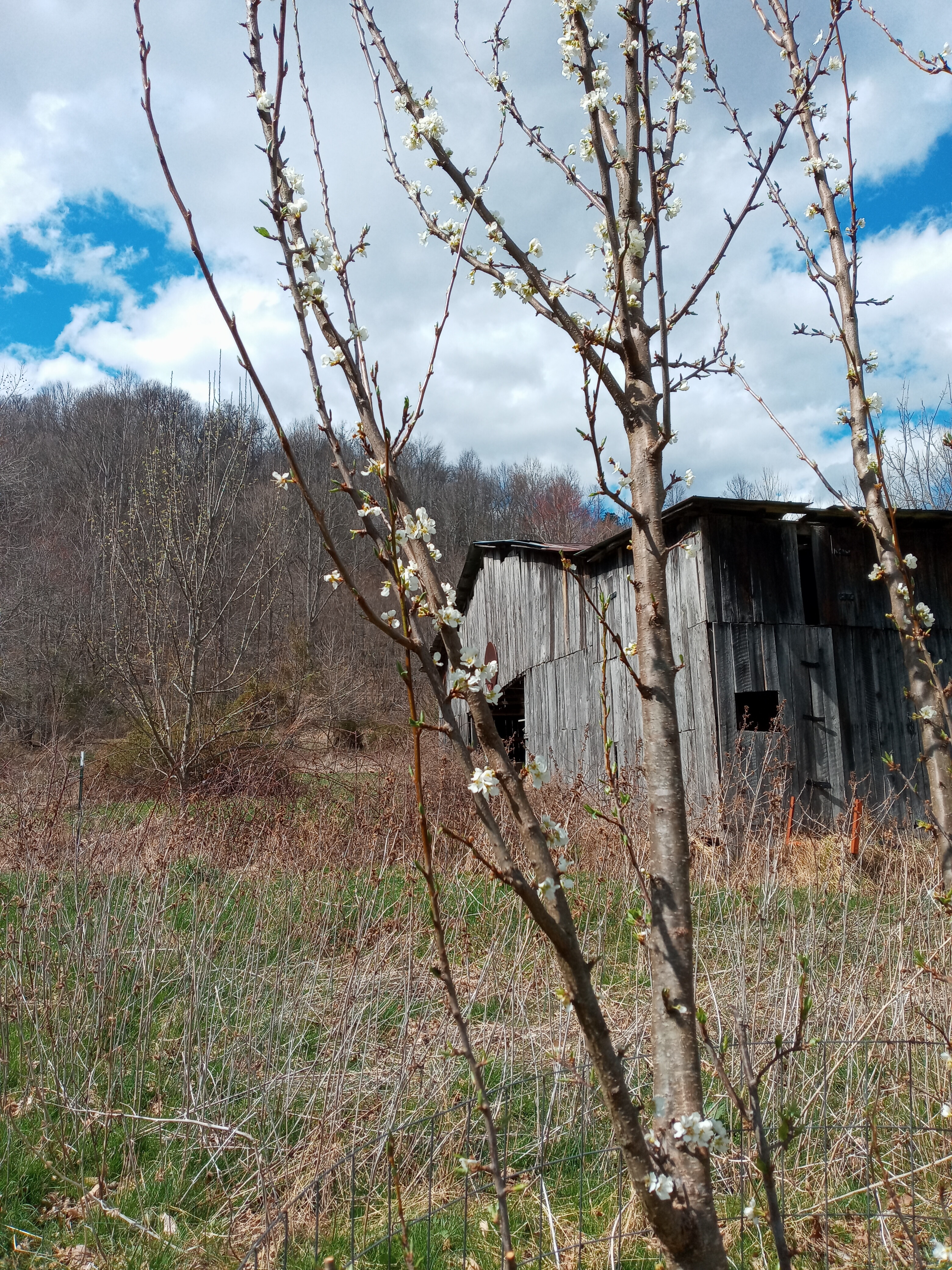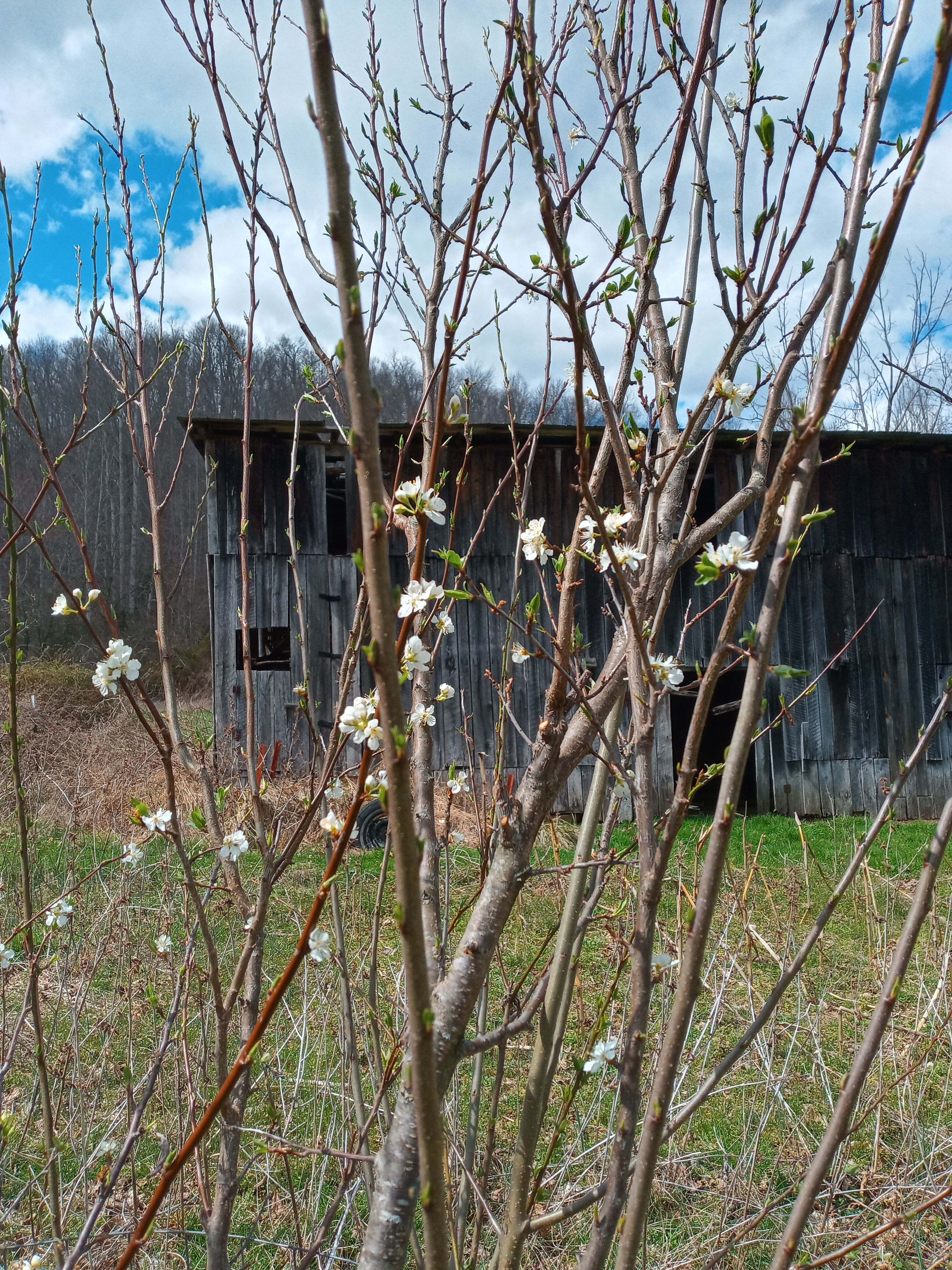 One of my honeyberries has a few blossoms developing today… my reliance ? Peach opened a few… blueberries developing on tifblue… and lastly my Lapins cherry looking quite fruity this year… no fruit from it yet but perhaps this is the year.