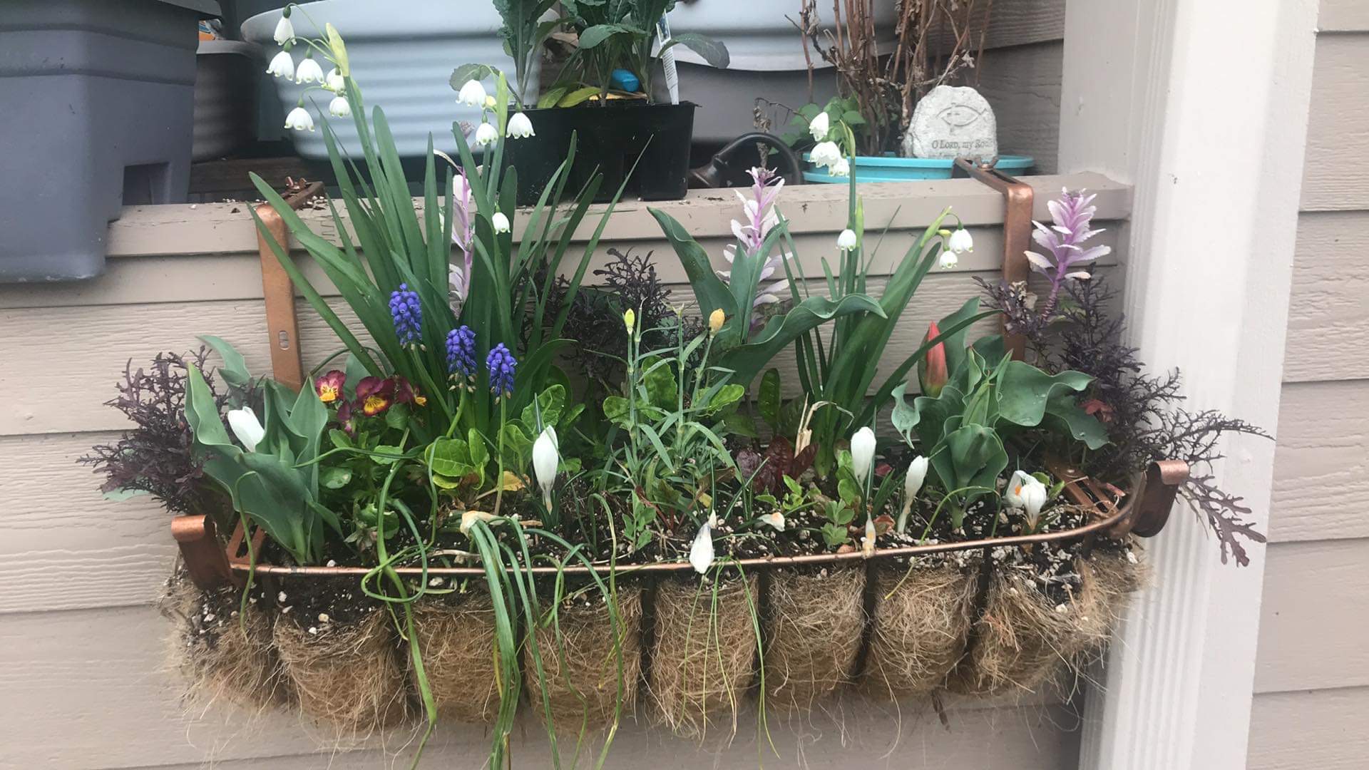 The planters are mine and I am trying to make them look full and cheerful. Any suggestions for zone 8b always open to listen. I mix flowers with edibles.