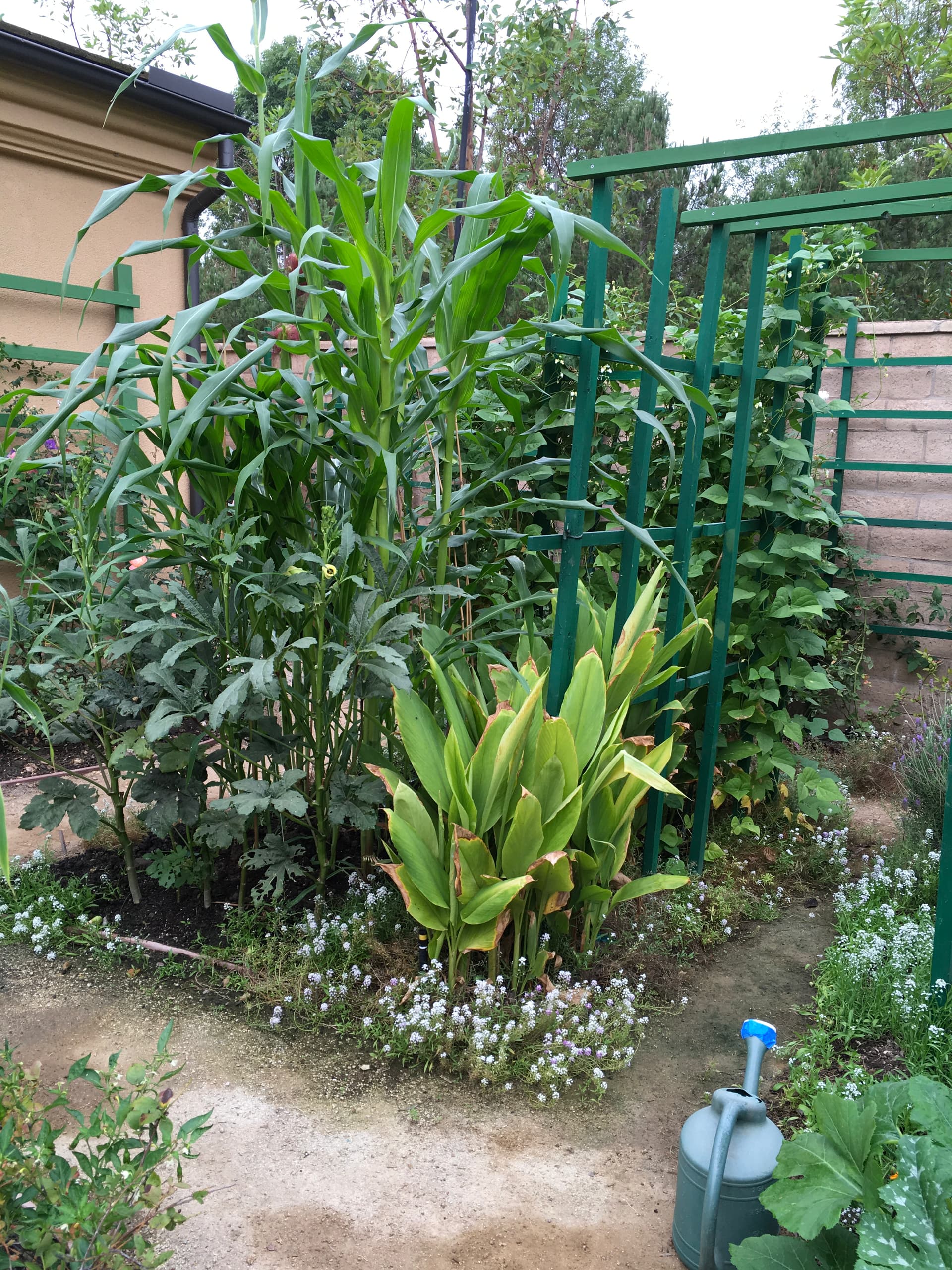 Talk about growing okra, I found an old picture last year or before I had 5 okra plants near the edge of my corn bed.