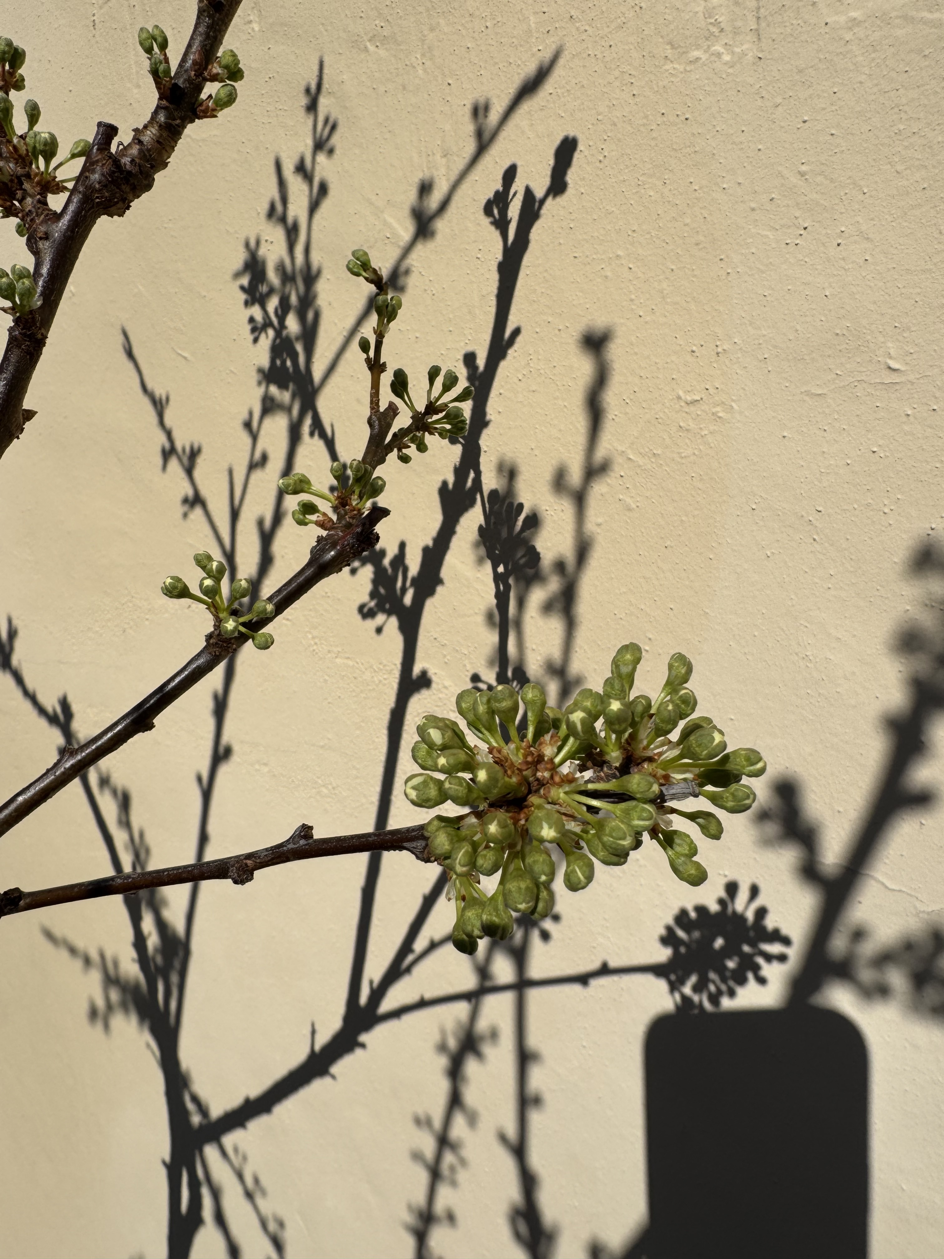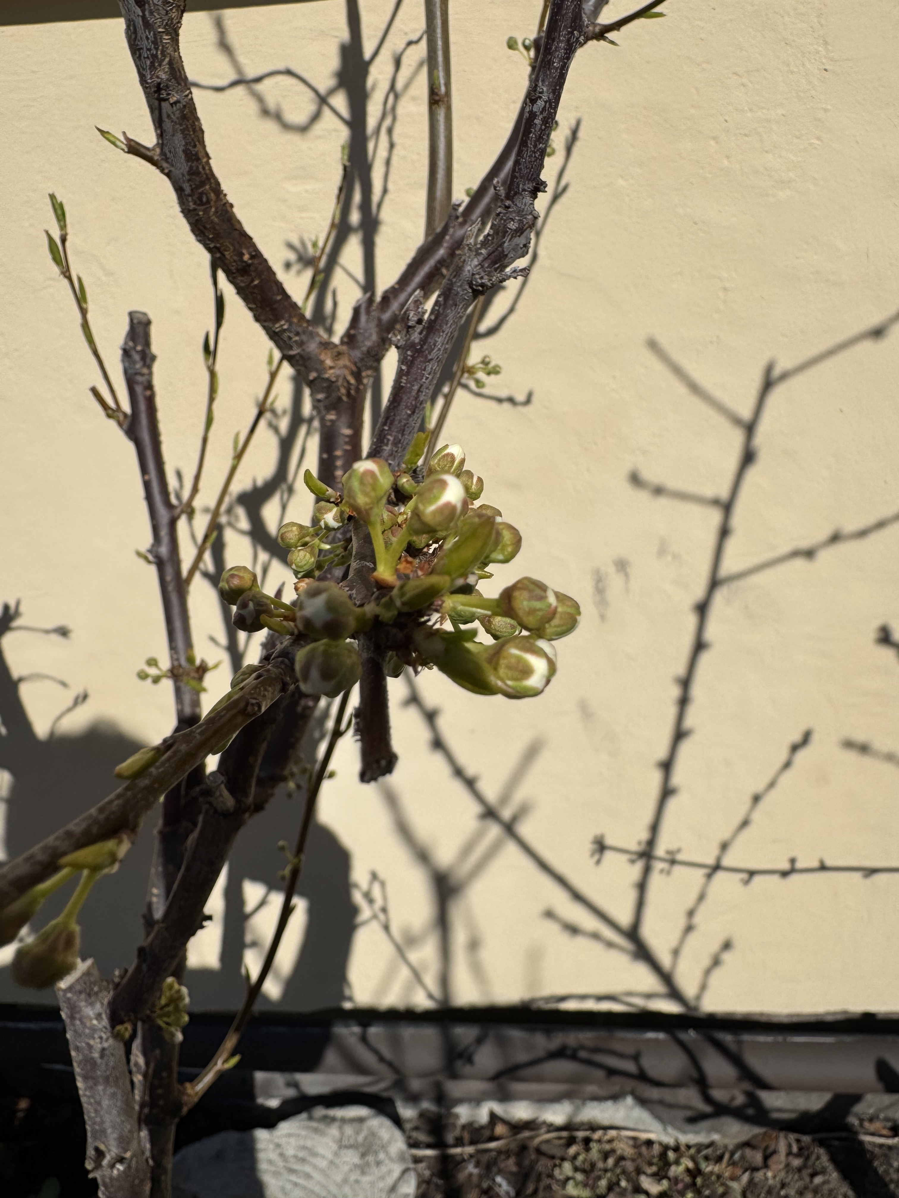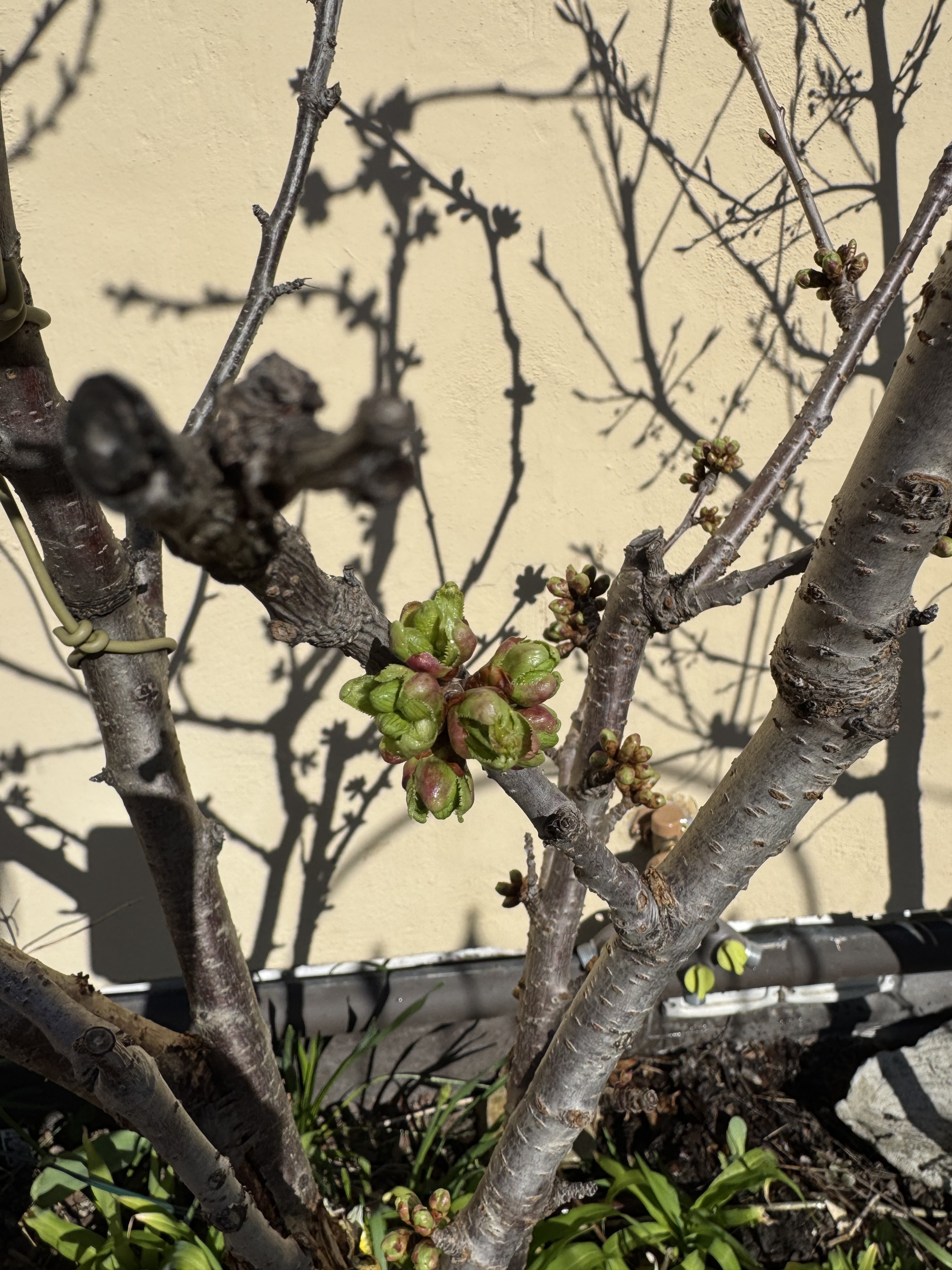 Greengage from Burnt Ridge grafted onto Marianna appears to be self fertile. This is its third year in a pot and looks like I will get to try some fruit from it.
