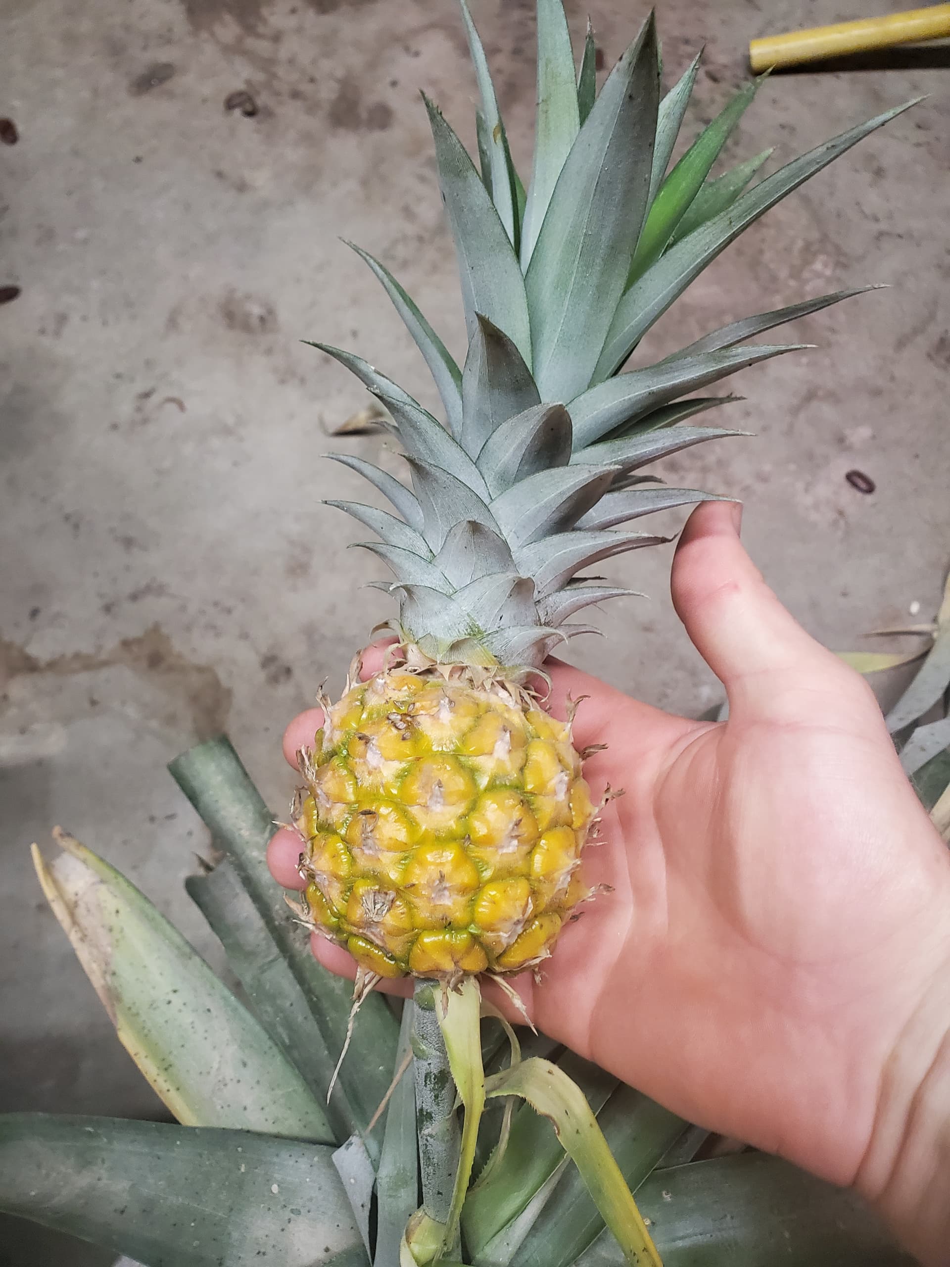 Yellow-green goes to golden and the fruity fragrance gets powerful. Usually, my garden customers pineapples and citrus would go through light freezes without damage to the fruit.