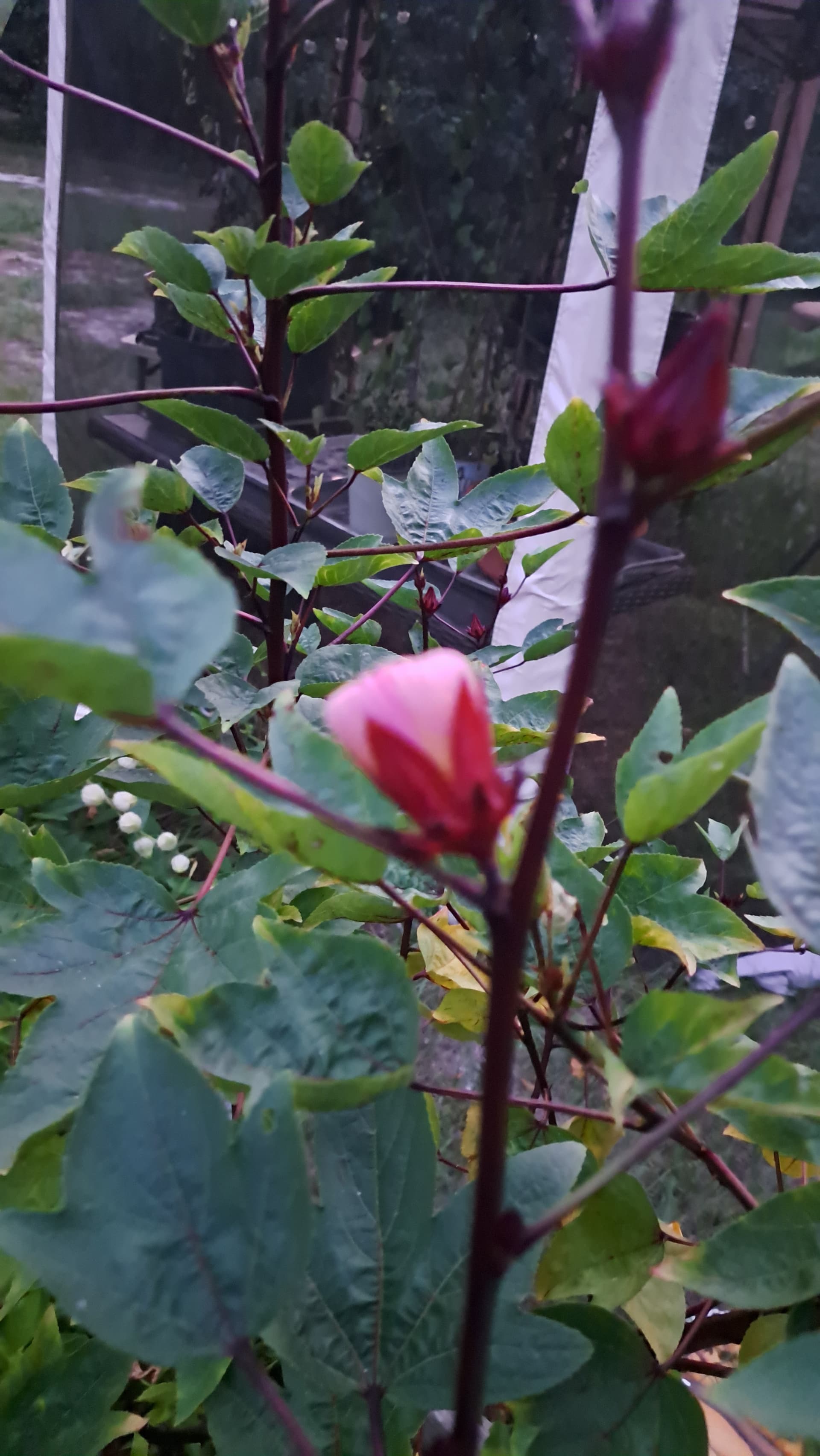 First Red Roselle flower of the year. Just in time as I just made my last batch of white roselle jam.