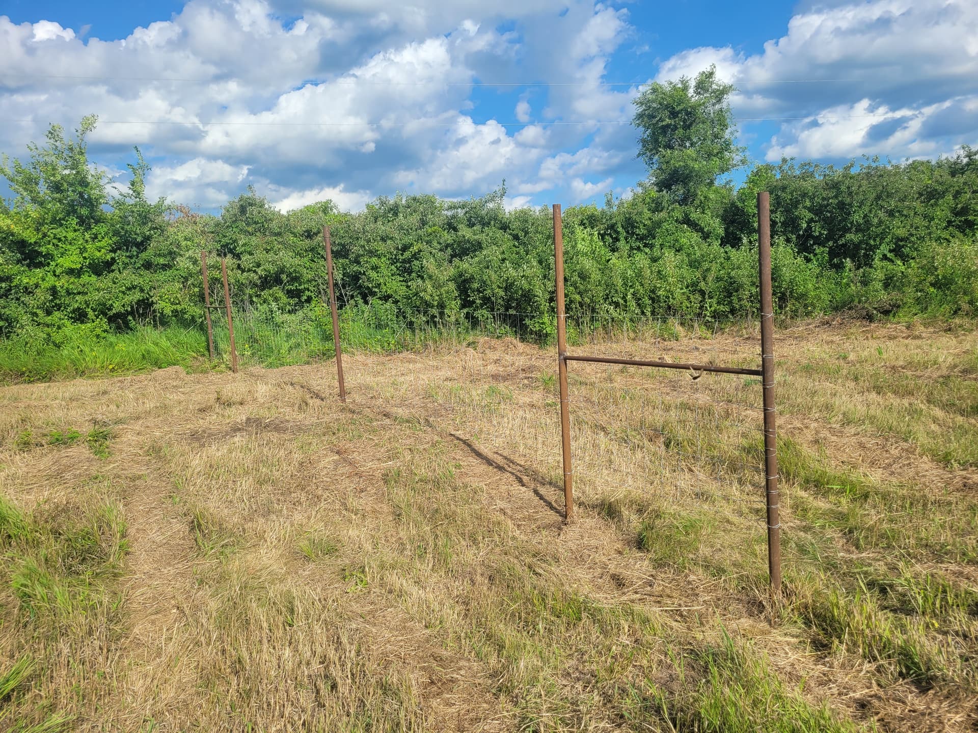 But I seen something like this before. The guy drilled holes in the pipe and ran smooth wires for his horse pasture. I overheard him saying he was going to have to replace it because the pipes were staring to rot away at the base. Maybe coating the bottoms of the pipes with rust proofing might be something to consider before you use a excavator to push the pipes down into the ground. Then capping the tops to keep the inside dry may also help. I like that they are hollow when you push them down, they will be good and tight and should stay put.