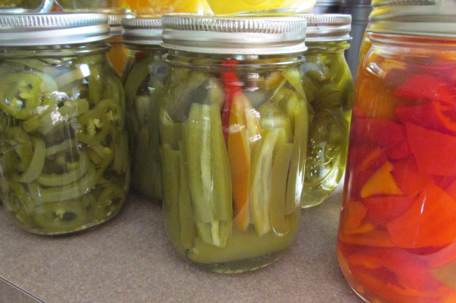 I think we canned about 15 pints of those mentioned above, plus yellow pepper rings, and two quarts of pepperoncini. And we still have peppers ripening in the garden. The Ancho Mulato look like they’re starting to darken finally. Plus, we seem to have more Habanero and Bulg Carrot hot peppers about ready.