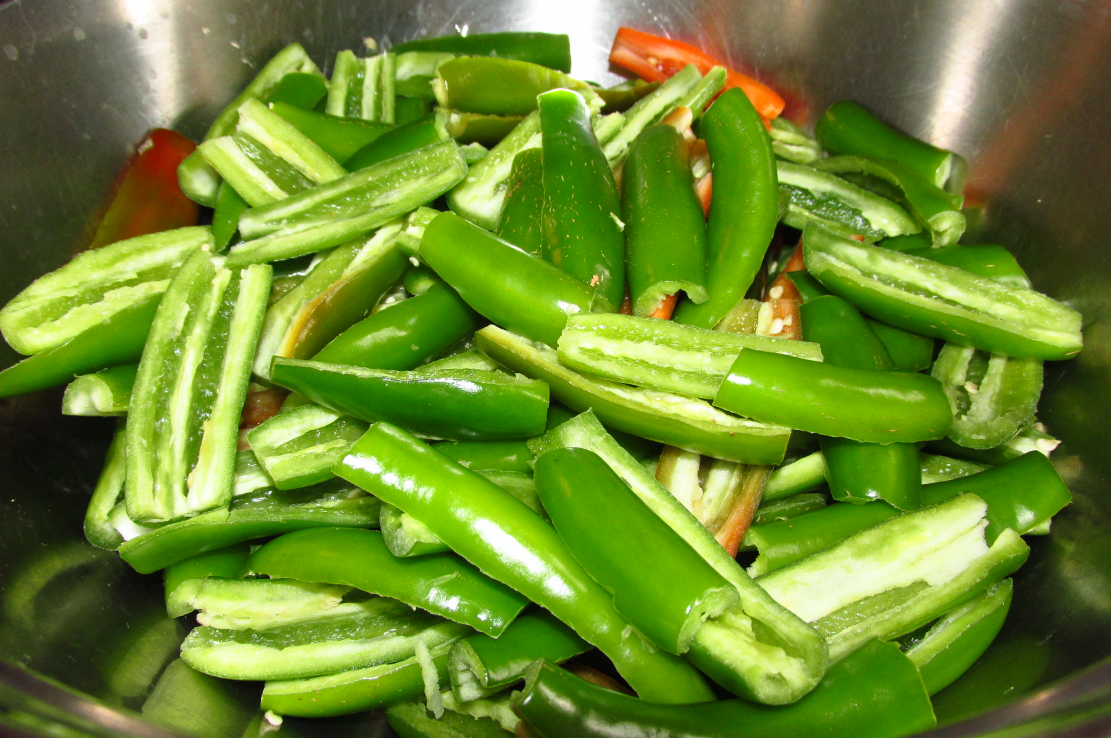 A bunch of jalapeno slices, I think it took me and hour to cut all these up. Talk about a potent mix of fumes…