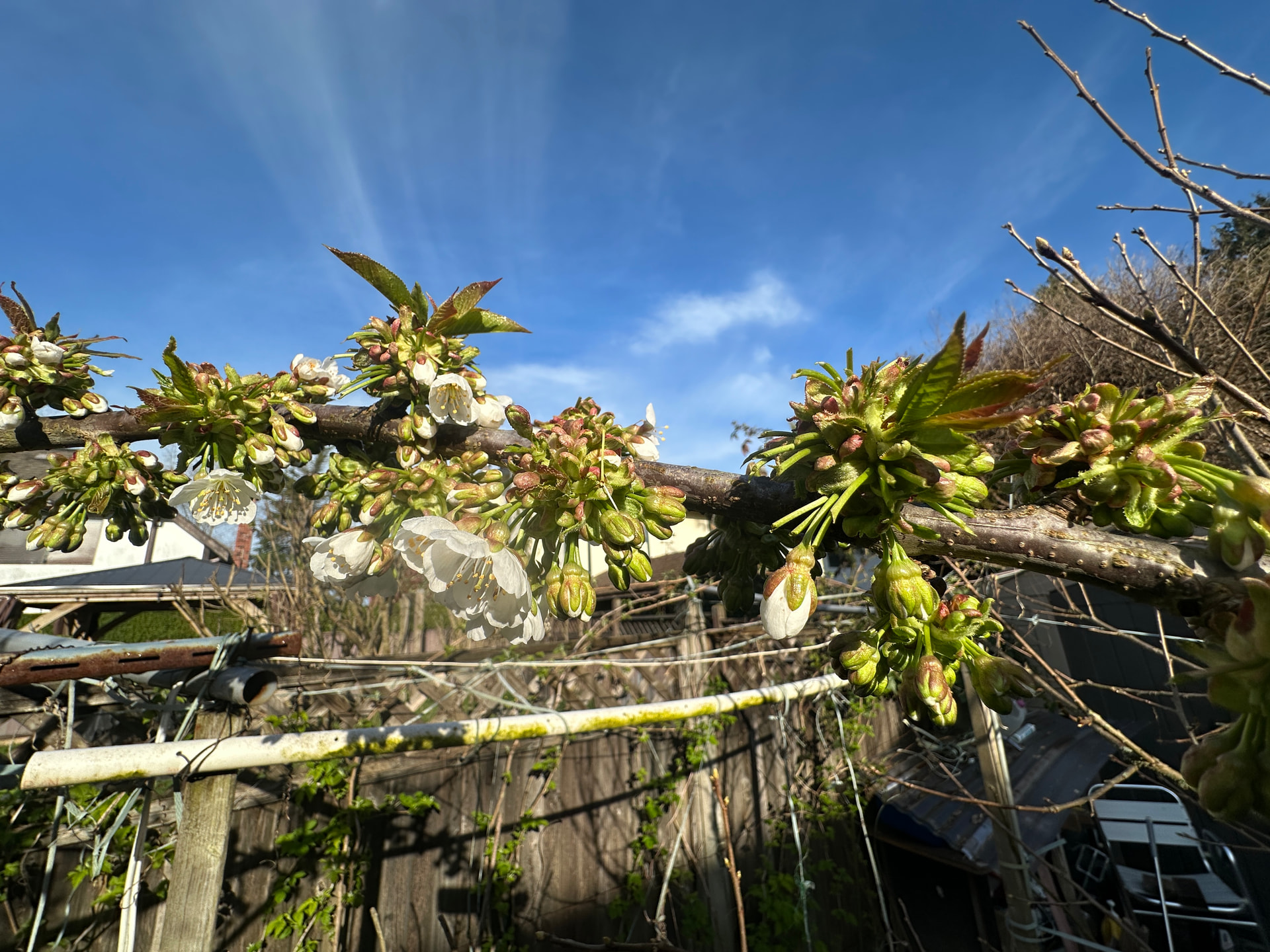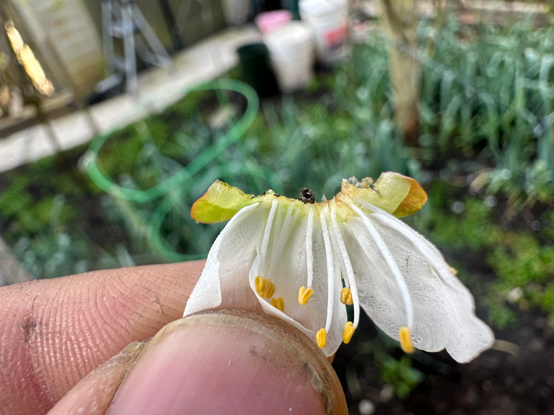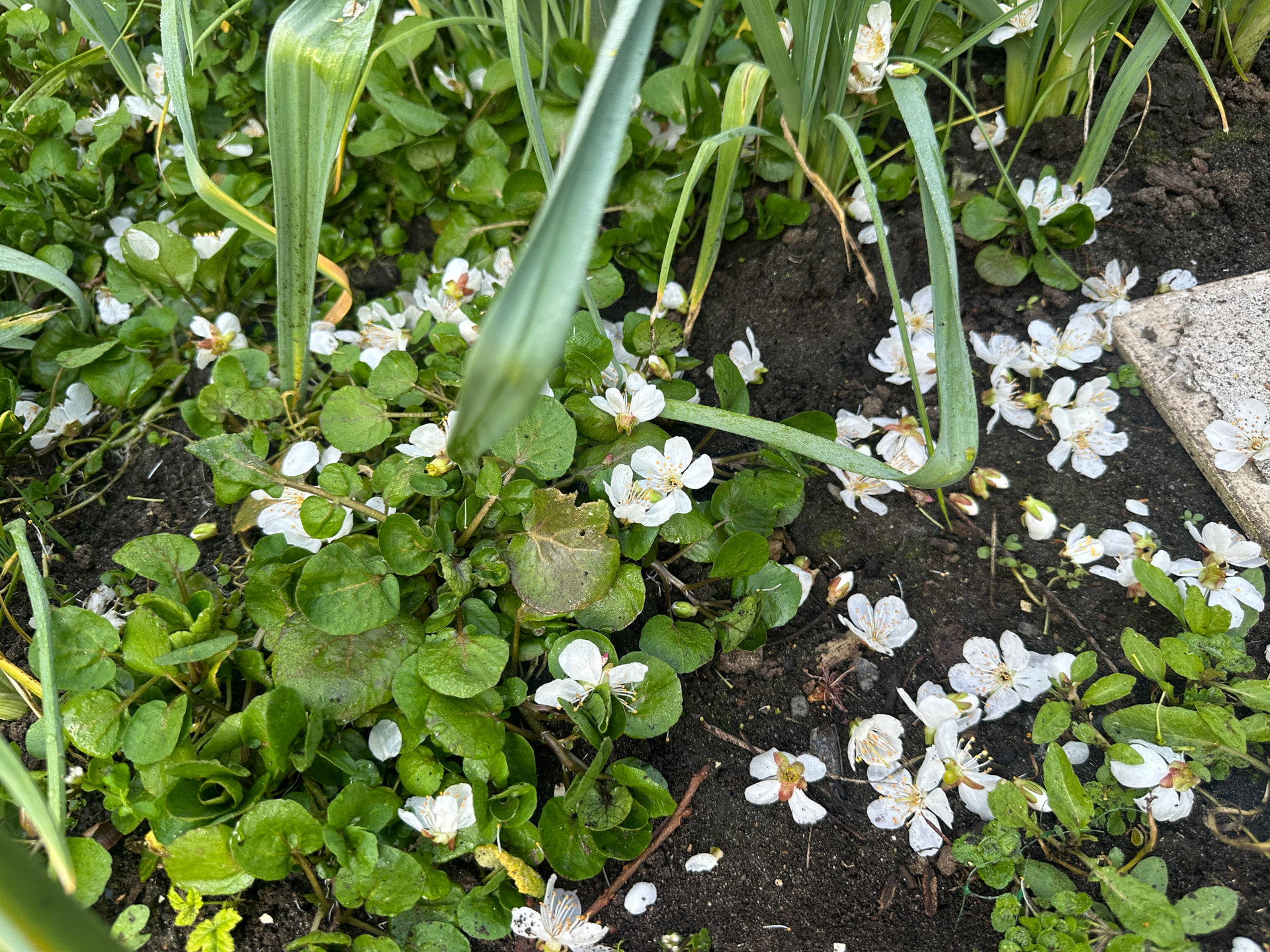 I’m not sure about this, but in the photo with the blossoms on the ground there was at least one example of a flower with the central nectary eaten out of it. If this is what is actually happening, then the likely culprits are birds. I had this happen to my cherry blossoms years ago, when flocks of House Finches destroyed lots of blossoms this way. Other birds did the same thing briefly in at least one more recent year. Fortunately, House Finches have become scarce here, along with most songbirds; so, this hasn’t happened in recent years.