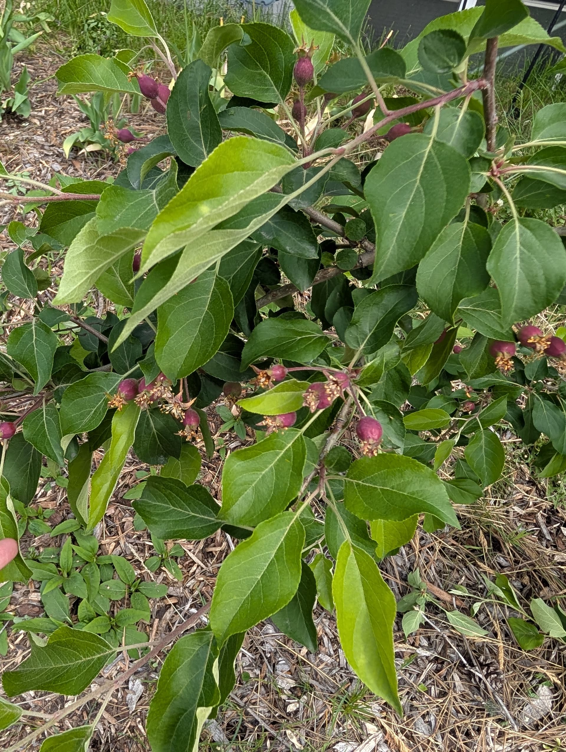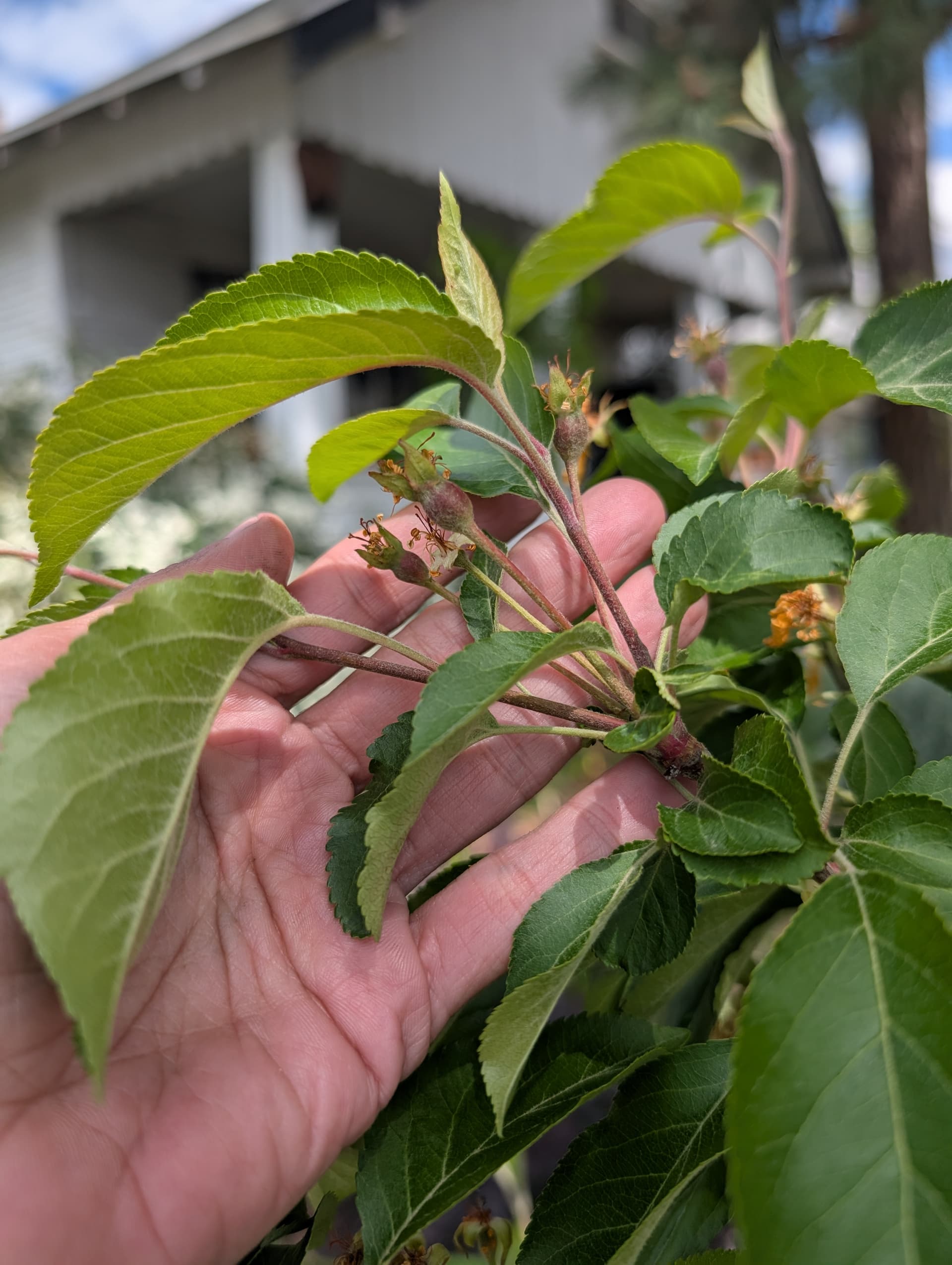 wickson (?) and Chestnut crab and, the native plum actually in flower. these were sad aphid magnets that never flowered out back so I’m glad I moved them to the front. I didn’t much care if they made it or not but they seem happier