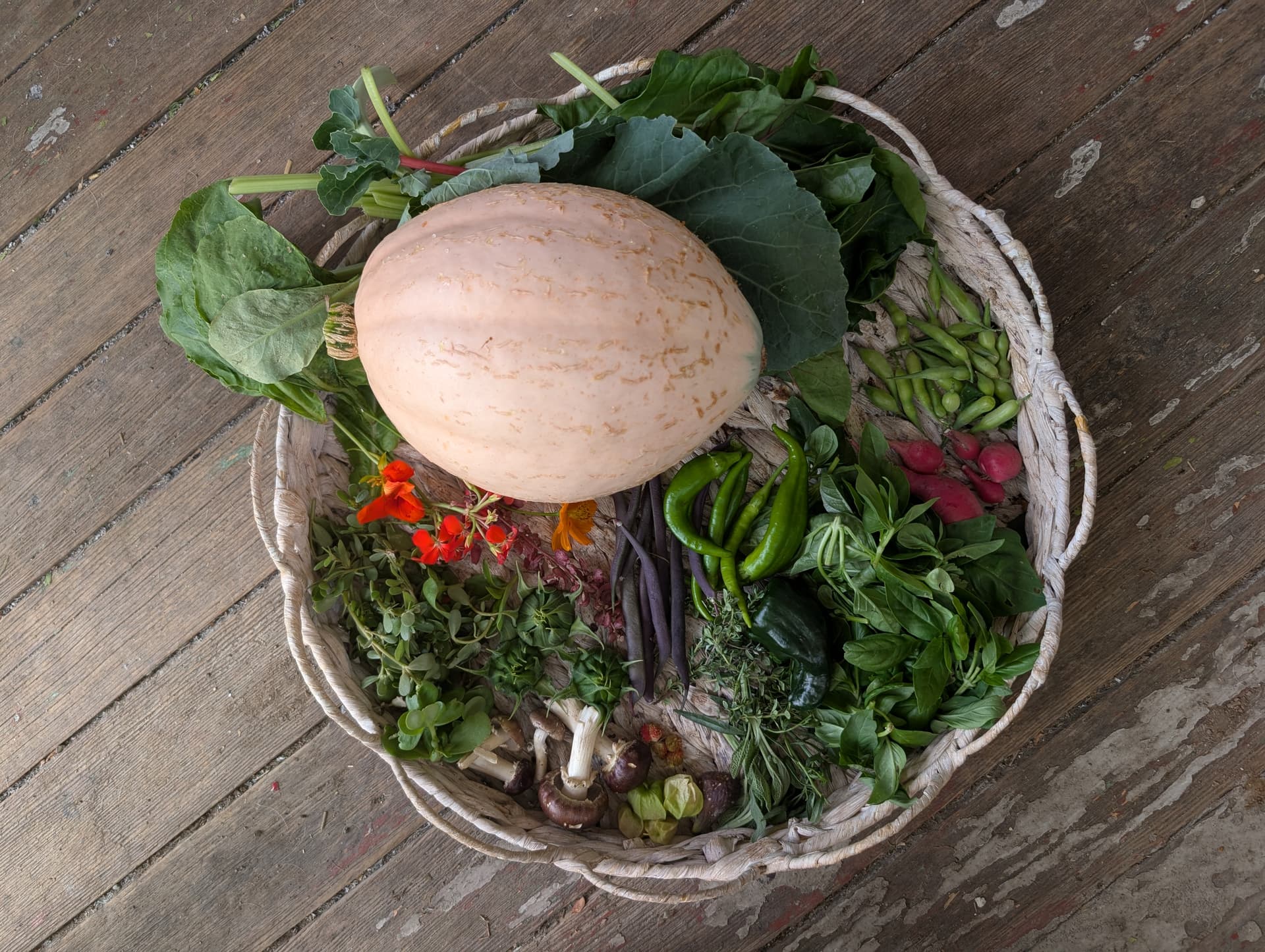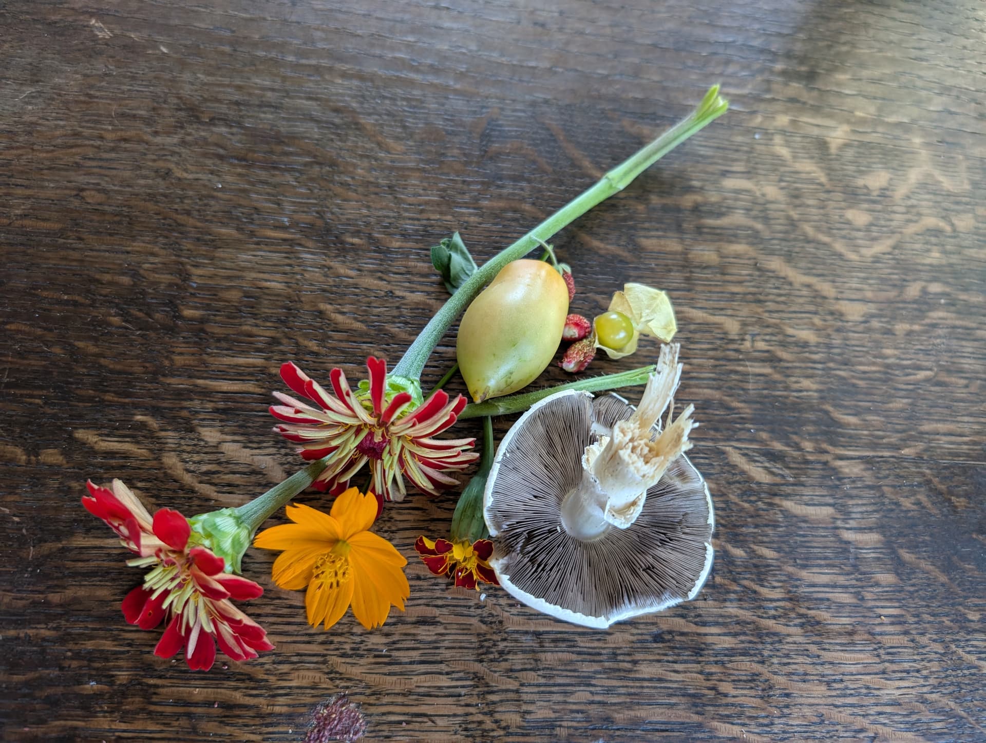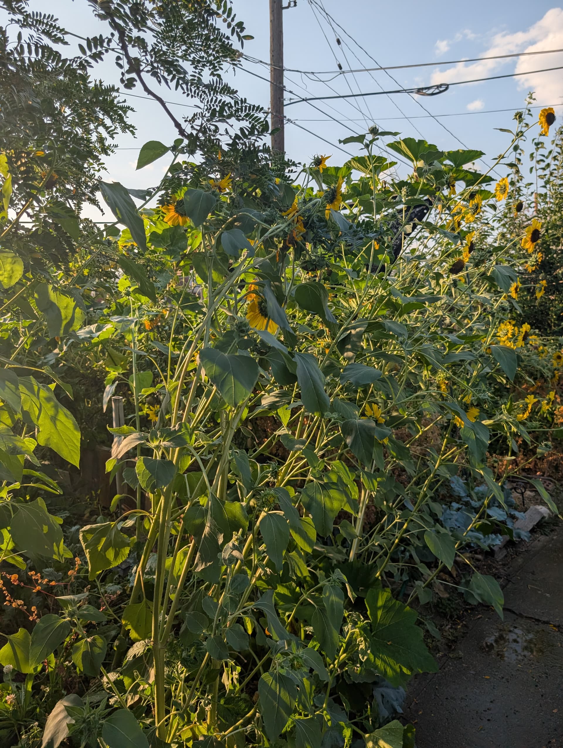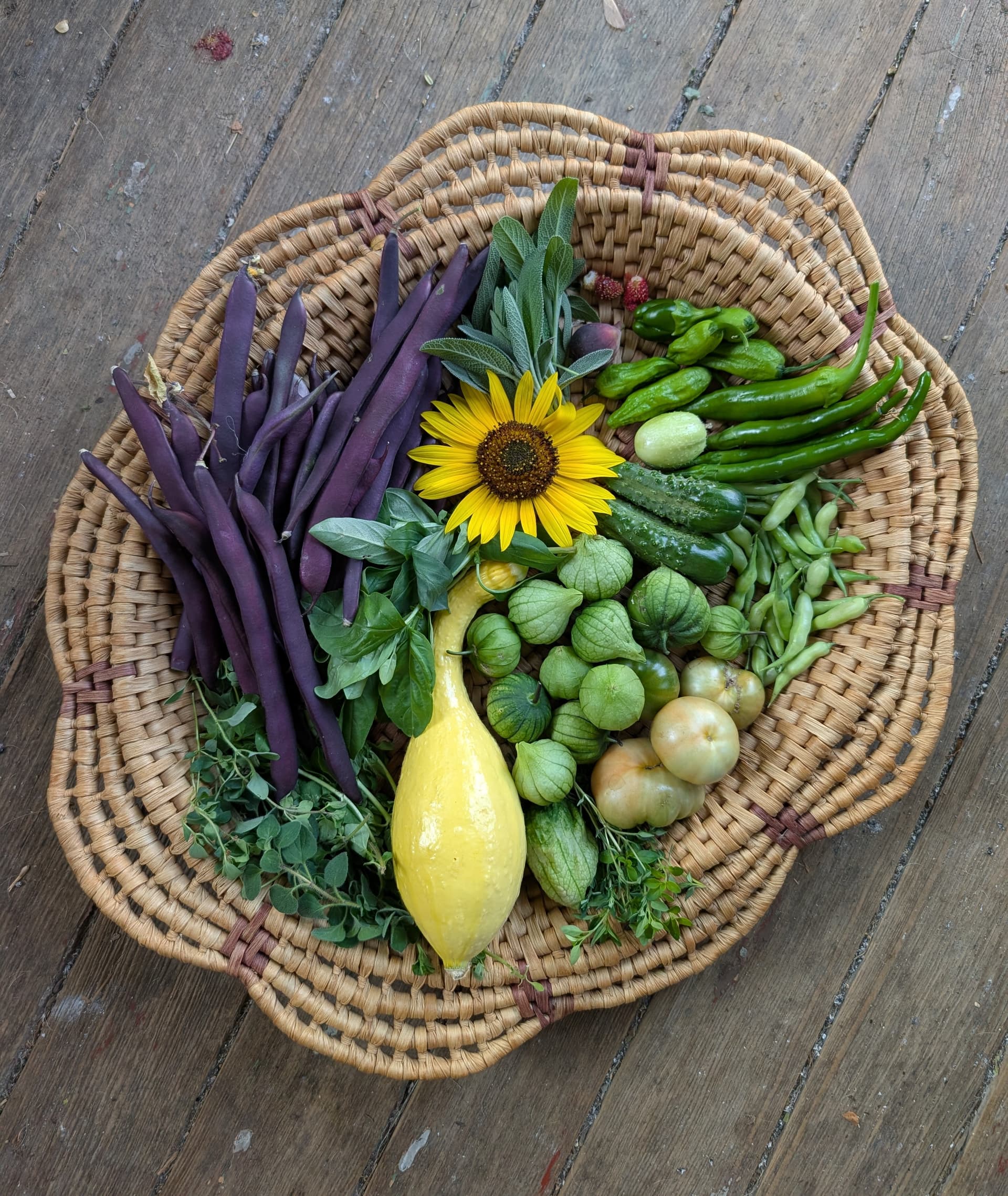 seeds: my landrace sorghum (variable height, uniformly sweet stalks for syrup, white to red grains), “anji sunflower” (titans, multi headed short ones with large seeds, and Mongolian all mixed together on year 3, drought proof), sand cherry, red corn (a cross of bloody butcher with red popcorn. it makes red red popcorn), tromboncino (second year saving seed), 3rd generation self seeding orach (mix of red and green, leaves the size of my head), landraced candy roaster/banana squash. yarrow. marigold. white hollyhock.