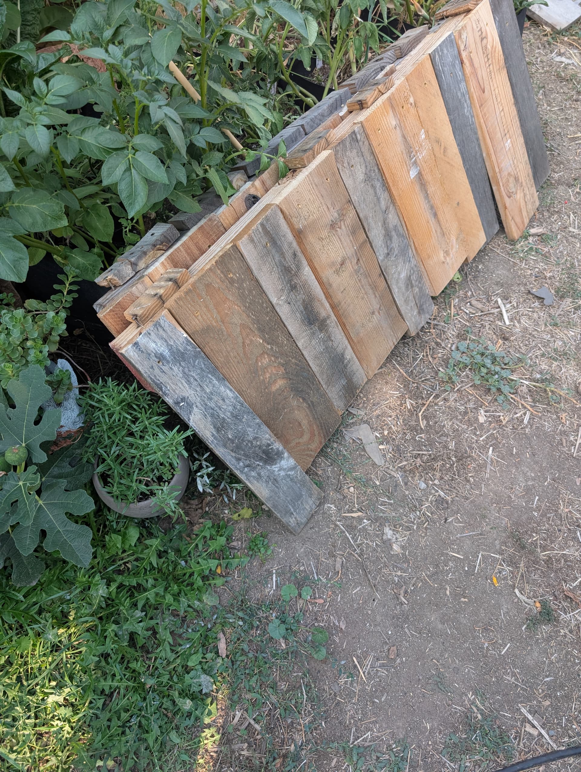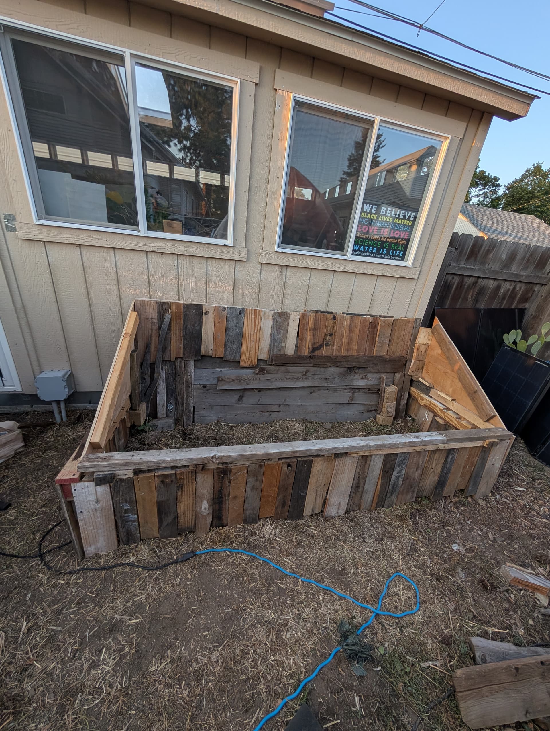 today i wore my work boots and got almost there. my partner and i can’t lift and hold the window lid, it’s too heavy to hold and attach the hinges and springs etc to the shed so I’m waiting on a helper who’s coming Monday. but i got the bottom done, the raised bed part and the slanted sides