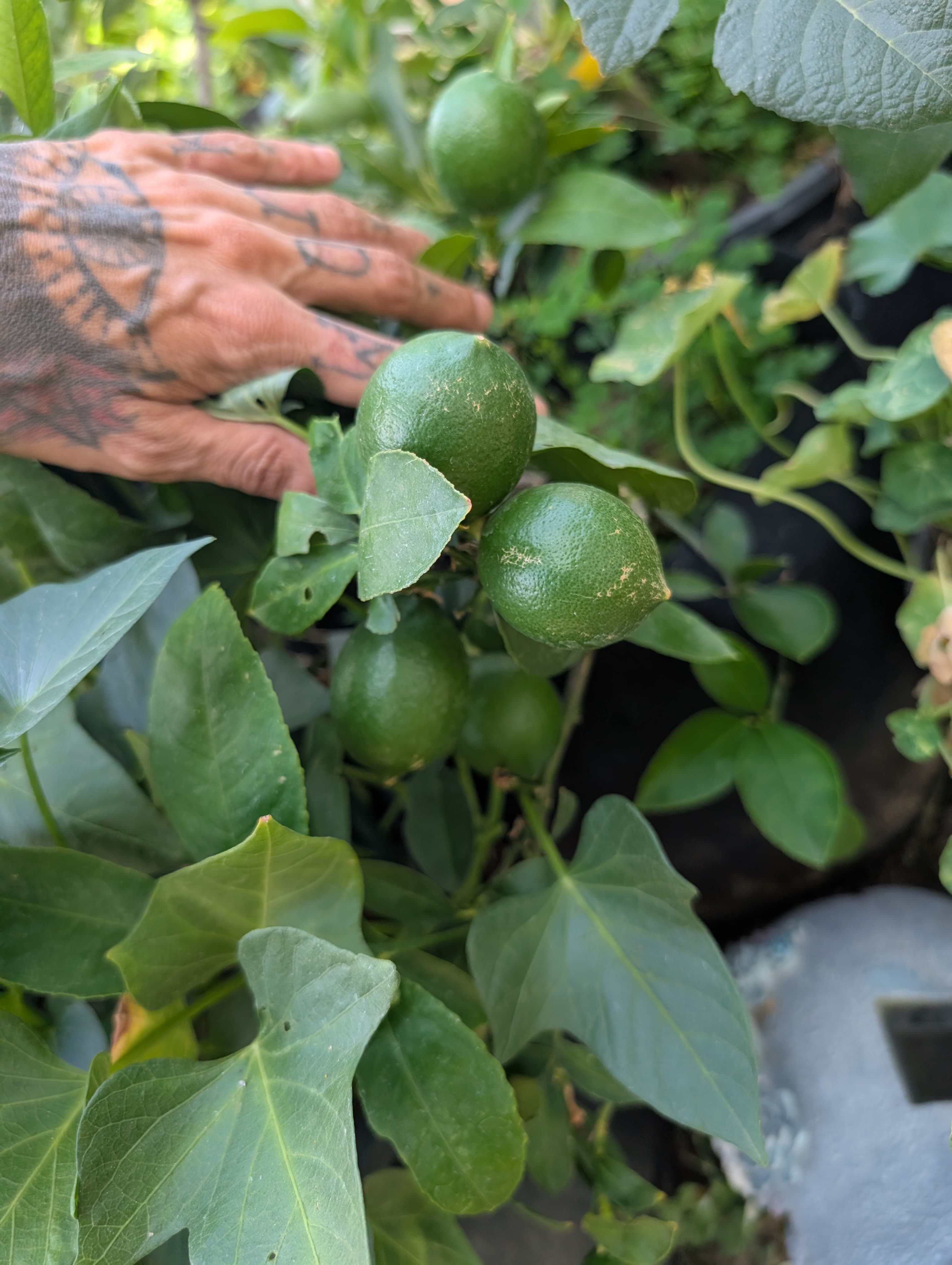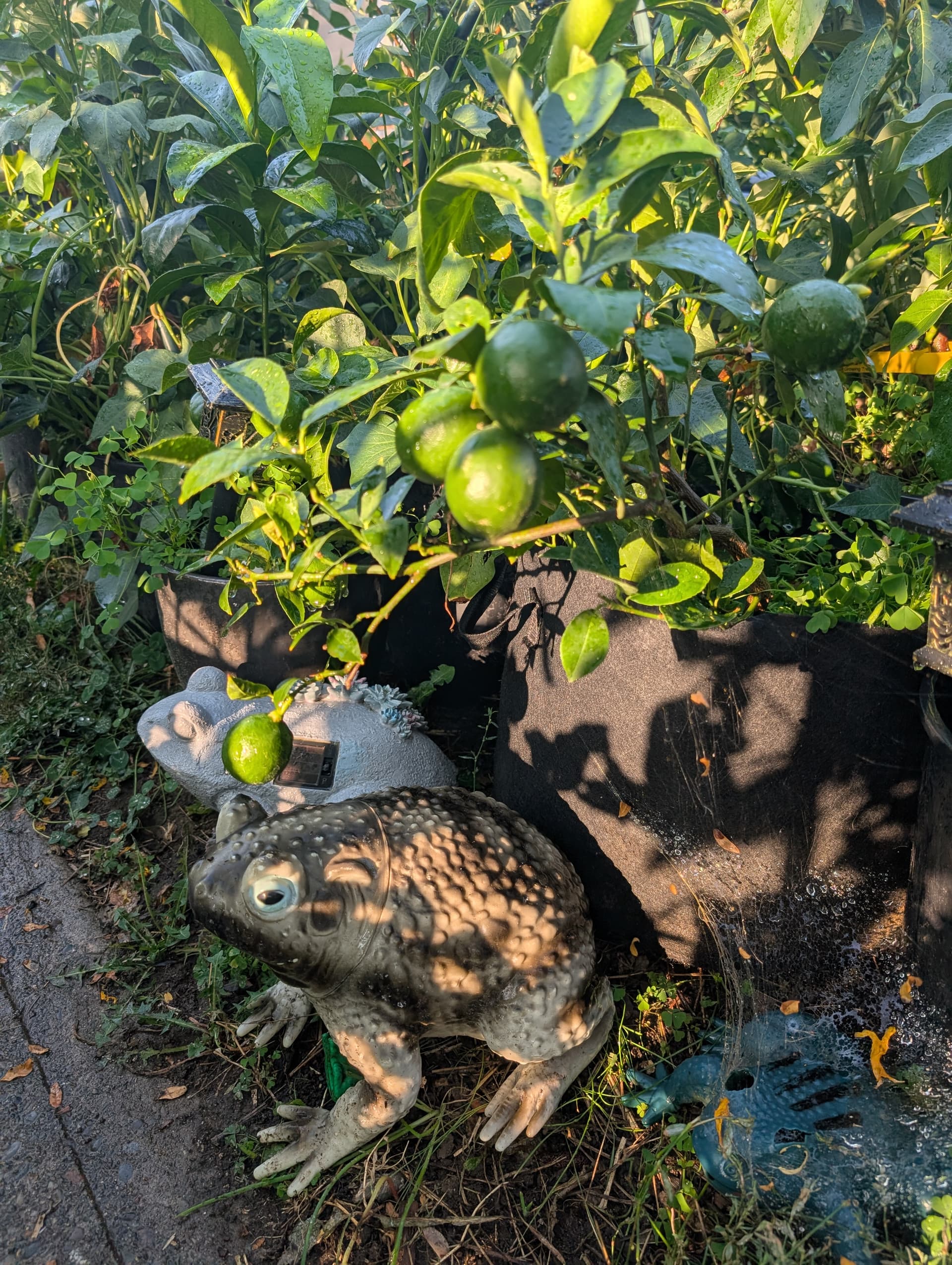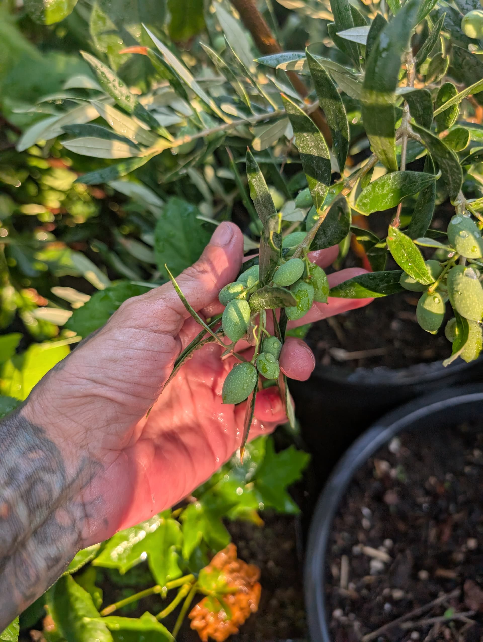lastly, olives are still fattening, Meyer lemon is laying them on thick, key lime has its one lime, and the satsumas are alive, if a bit yellow.