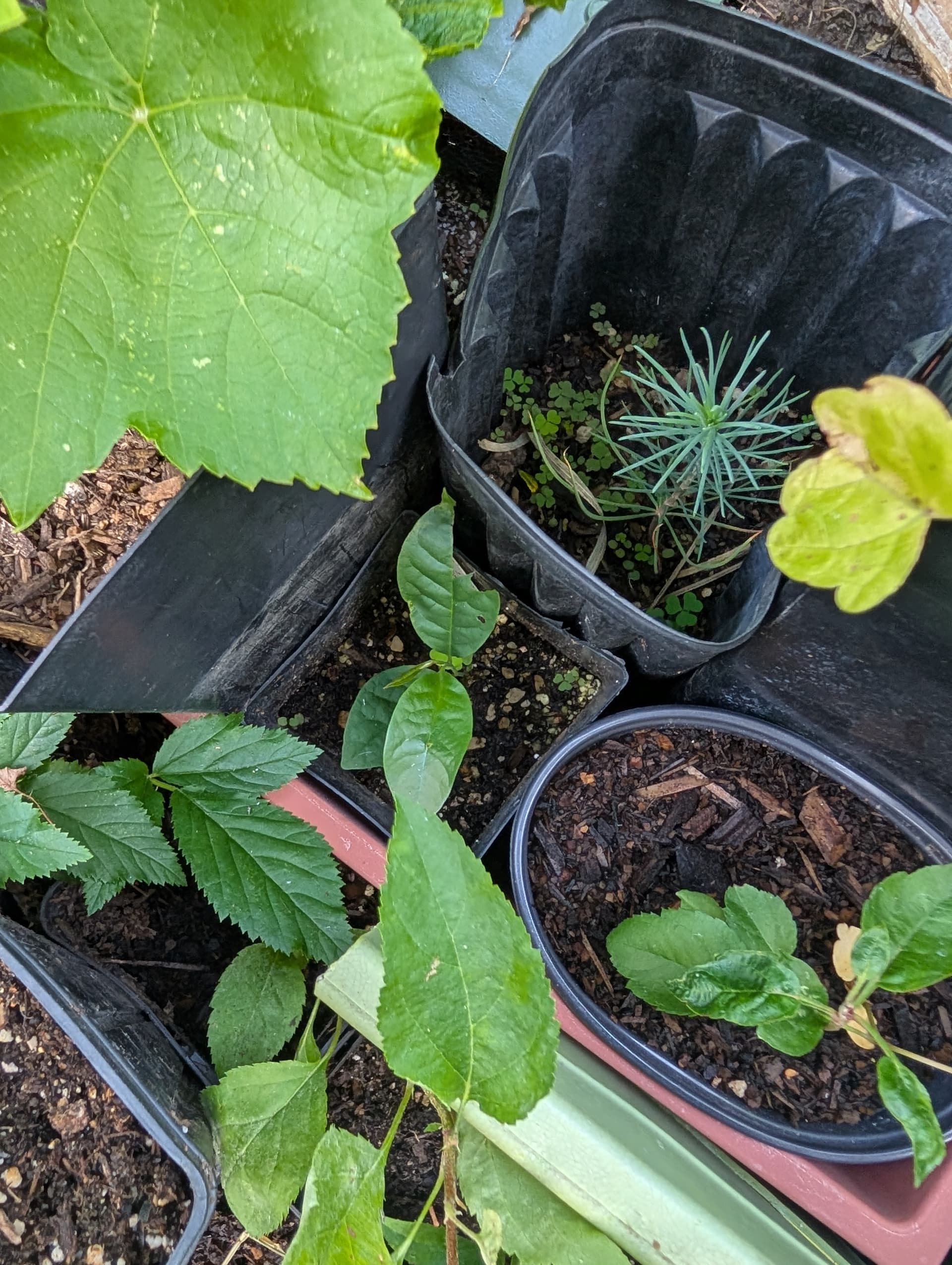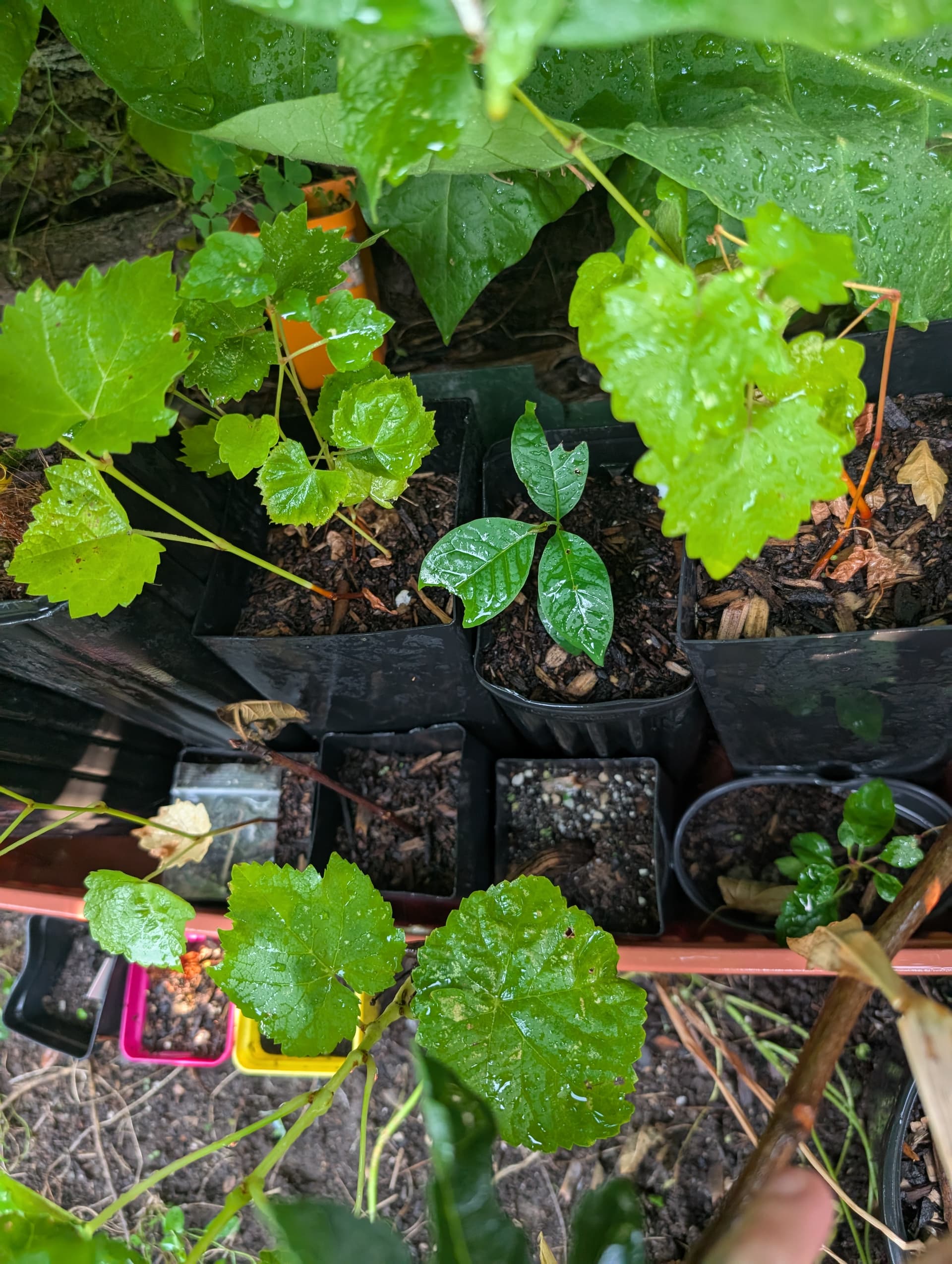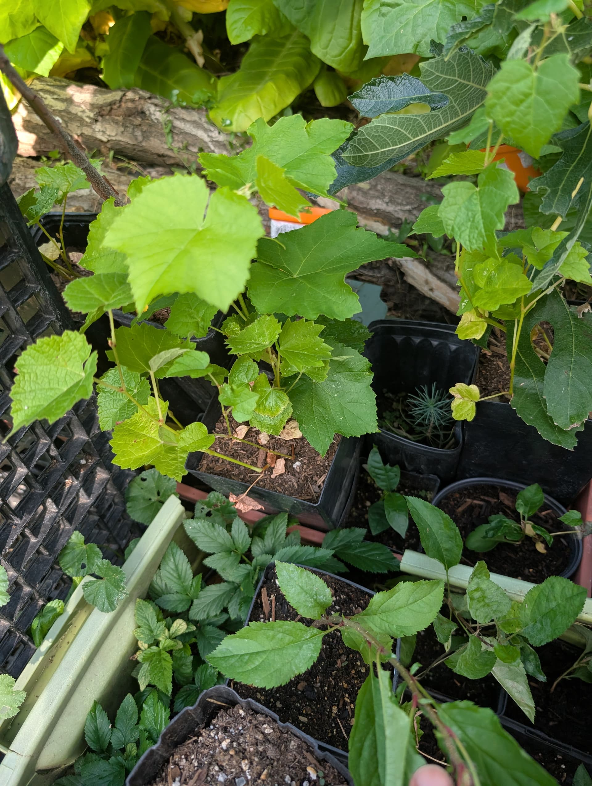 yacon and, various apple and grape seedlings. a maple in there and maybe a honey locust and raspberries. one I’m not sure what it is. my partner’s babies mostly