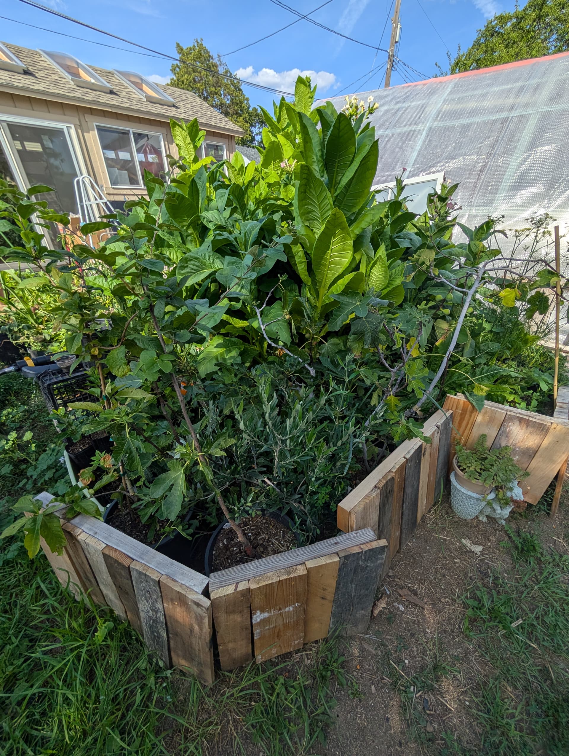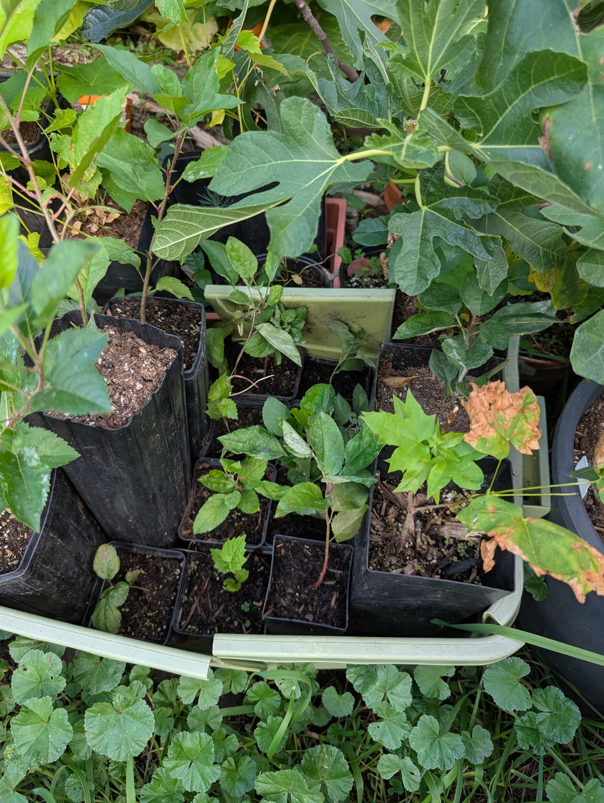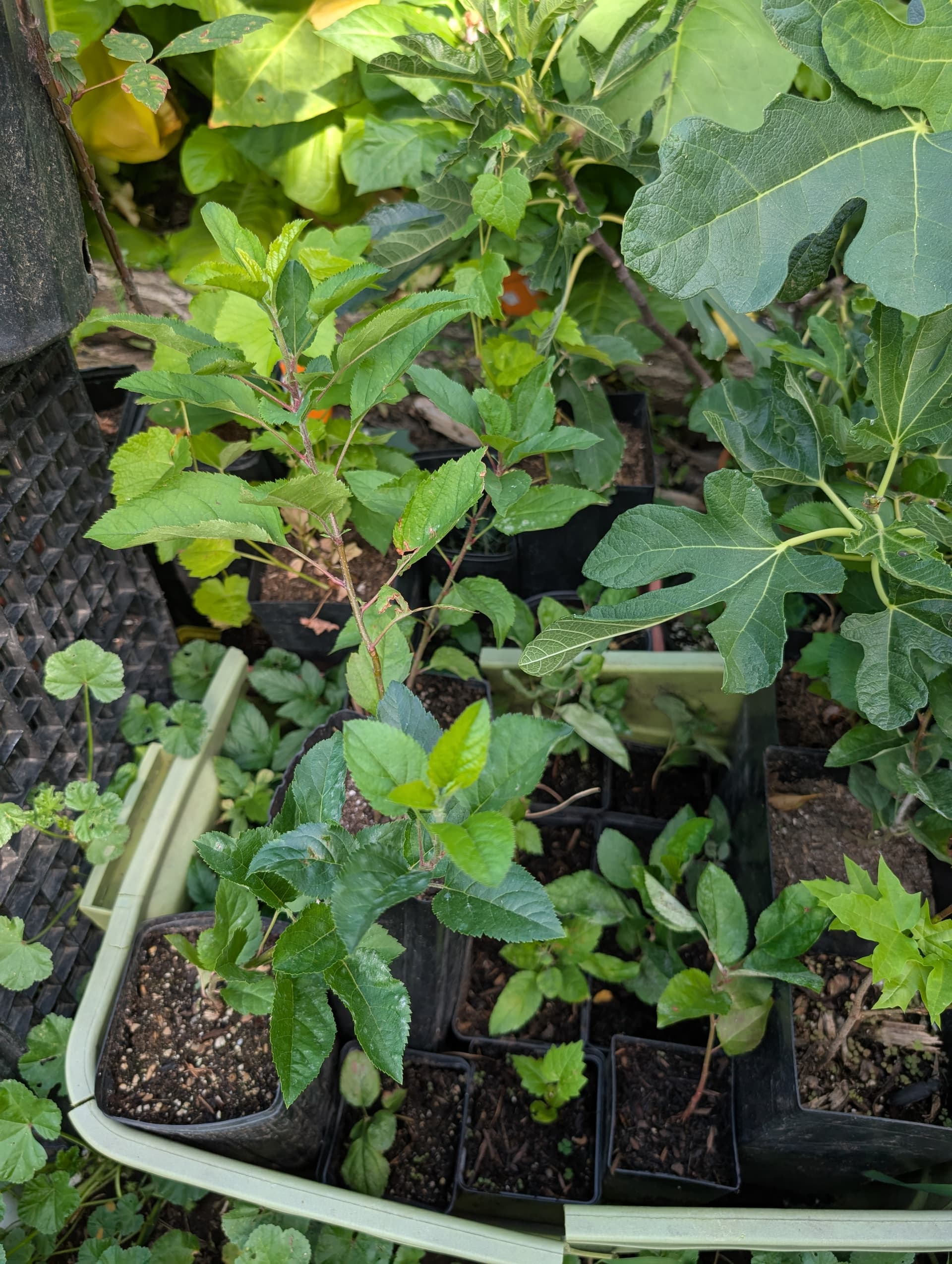 yacon and, various apple and grape seedlings. a maple in there and maybe a honey locust and raspberries. one I’m not sure what it is. my partner’s babies mostly