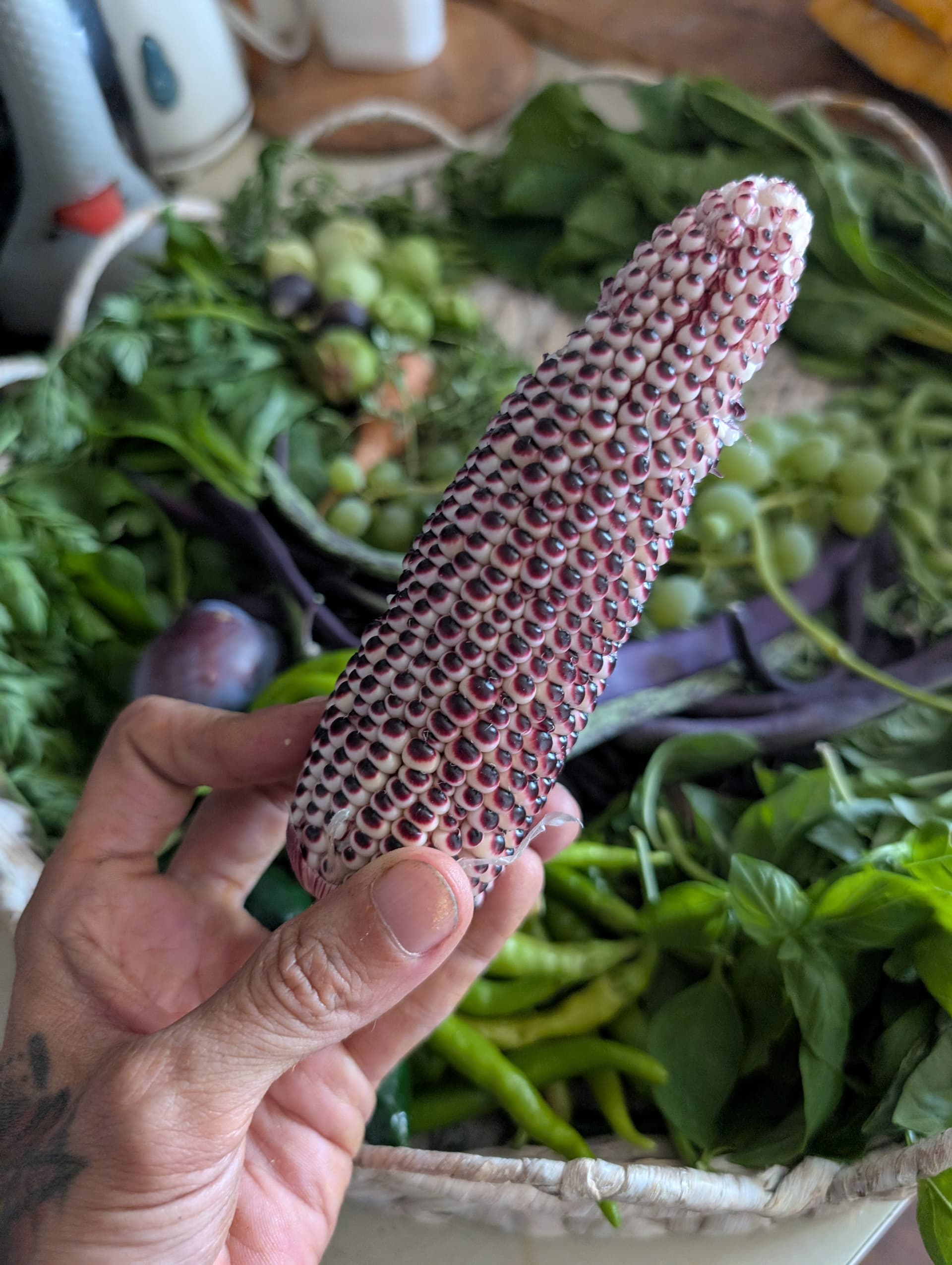 corn has gone bonkers. birds are after it this year and earwigs eating the silks. still, they look like eyeballs and they taste good, my goals for the year.