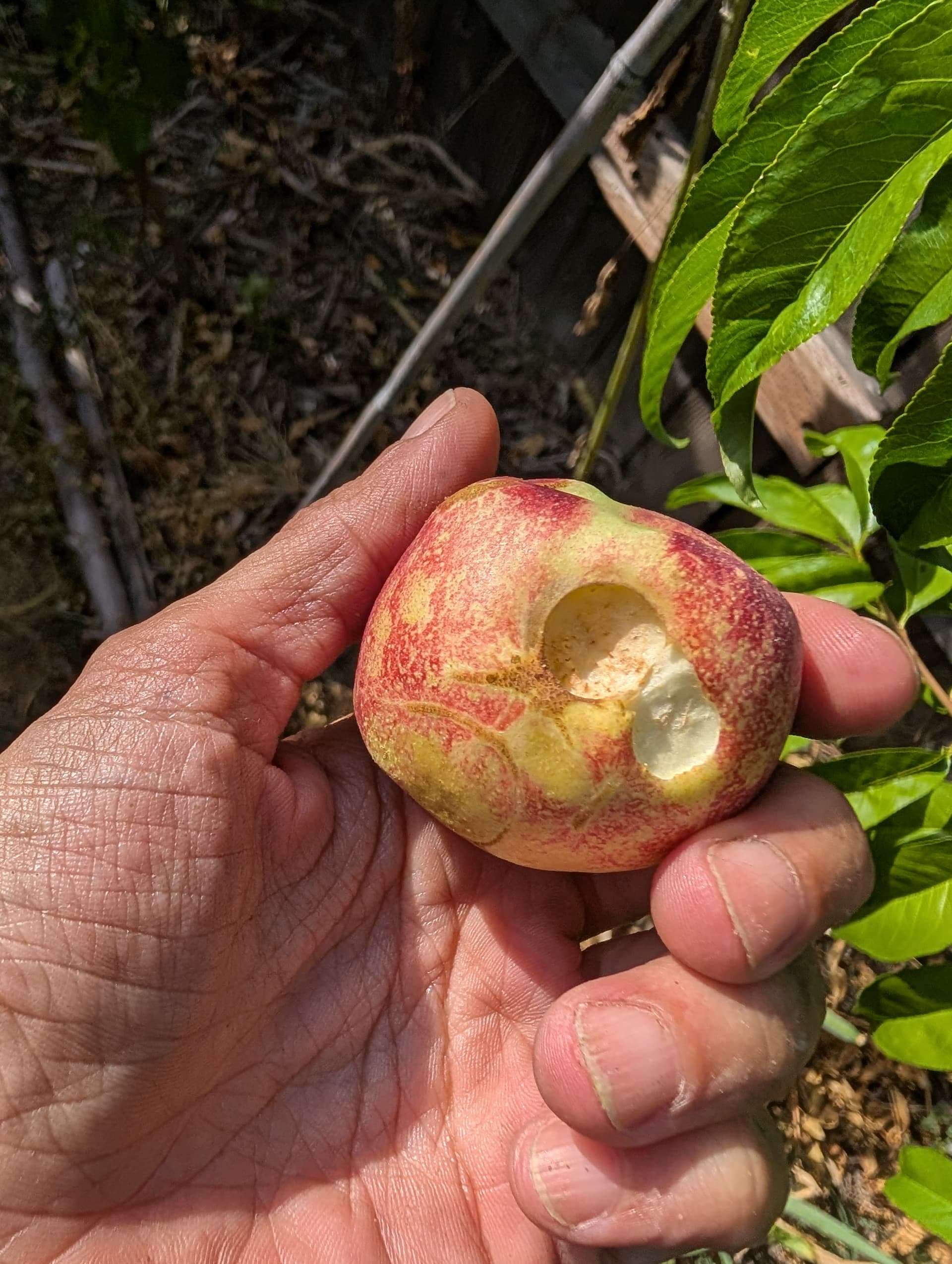 nectarines got bird pecked and struggled to make a handful. not very juicy, white flesh. none made it to ripening.