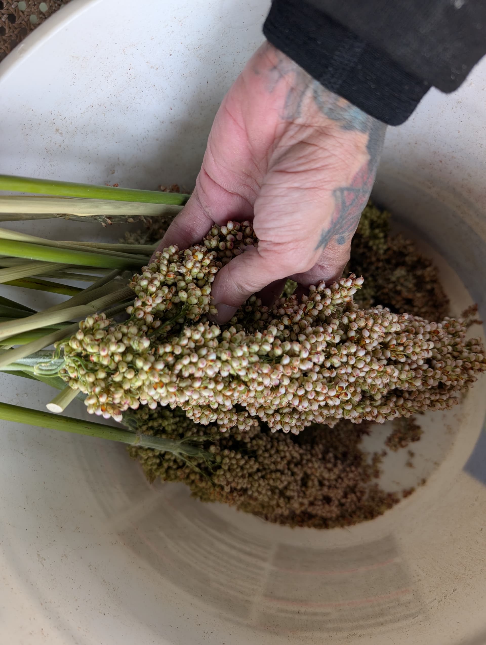 sorghum in milk stage. corn made some popcorn and some sweet, there’s still silks coming on a few.