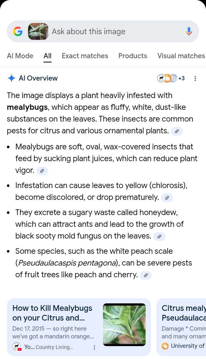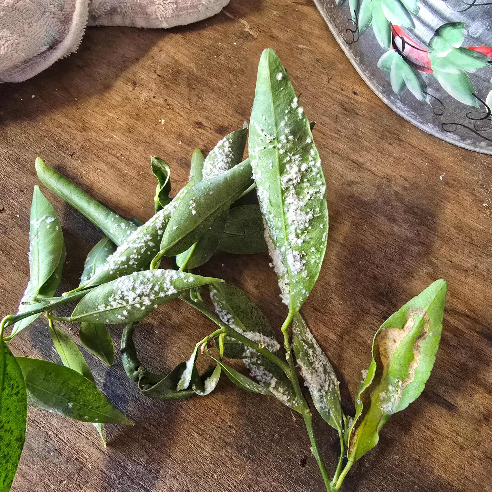 I have a bunch of diatomaceous earth, and read that it’s effective against wooly aphids and mealy bugs, so I treated thre whole tree and the ground around it. Weather has been dry so I should know soon how effective it was. Thanks for the input KS_razerback and Audi_o_phile