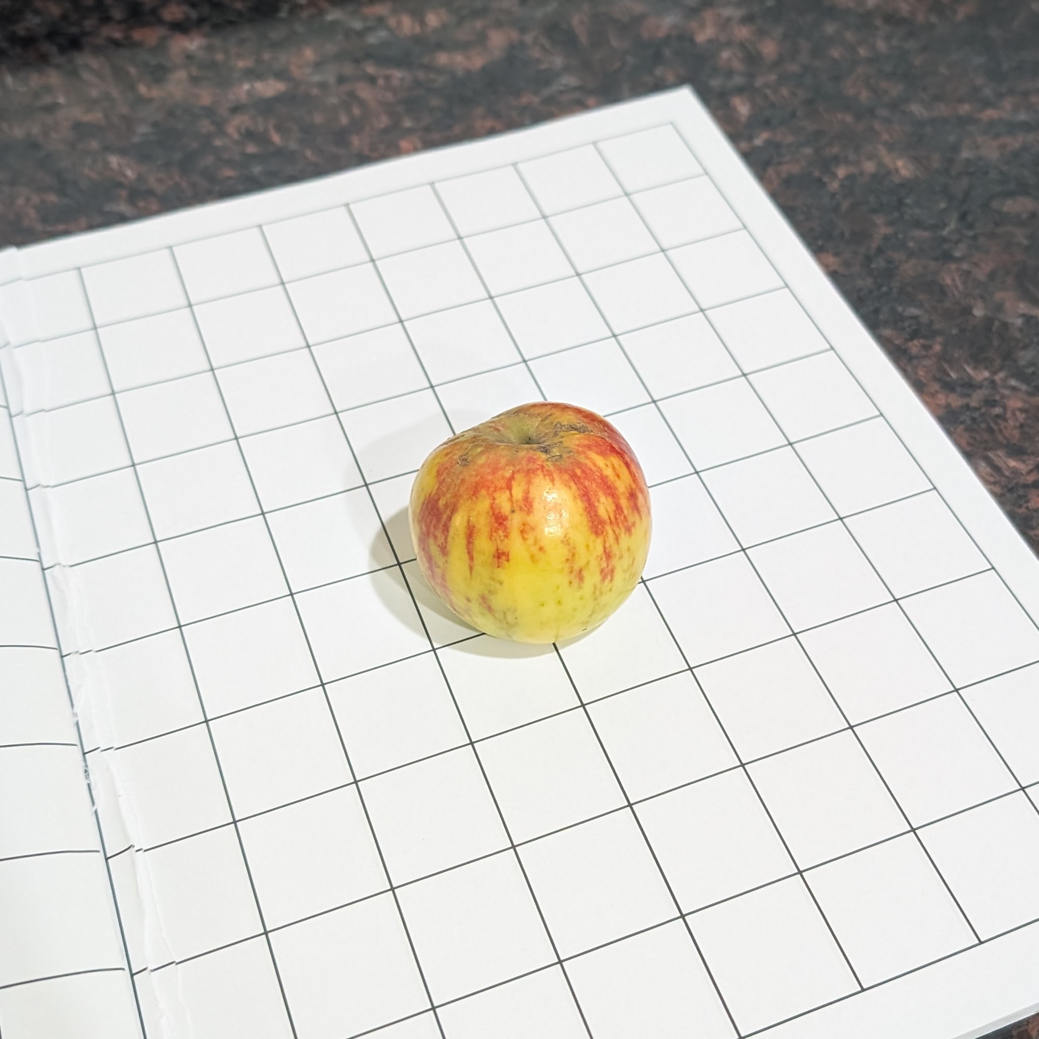 Here is the one fruit I allowed to mature on the young tree. Graph paper squares are 1".