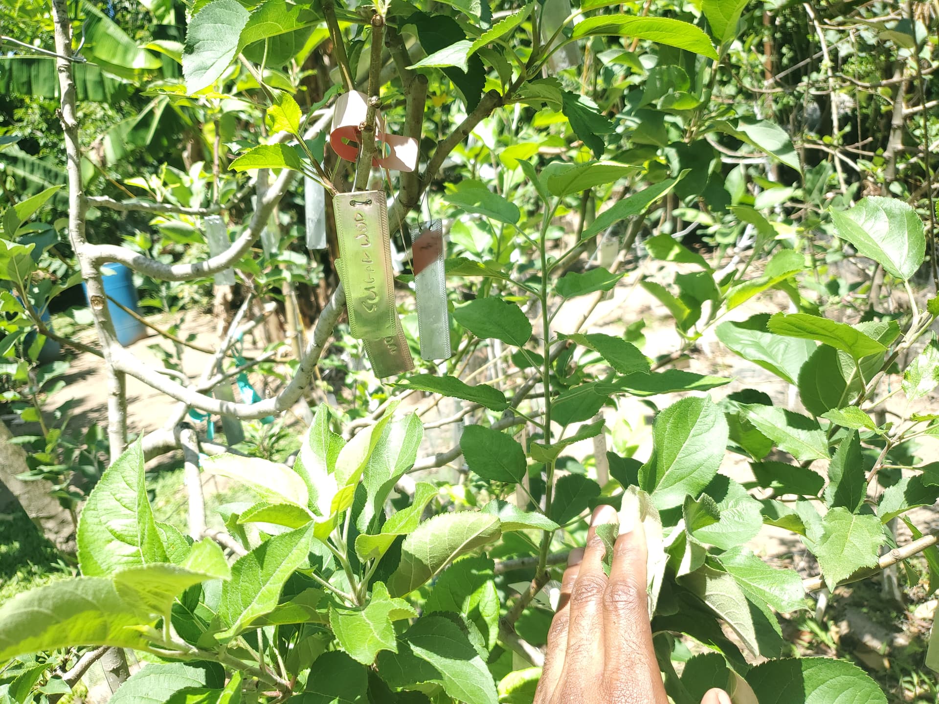 Neither of my whips are big enough to allow fruiting yet, but CC is precocious from the start, for both bloomed after the grafts callused last year. I will probably thin one stringently to see how they size up with a lower seed set once they are transplanted.