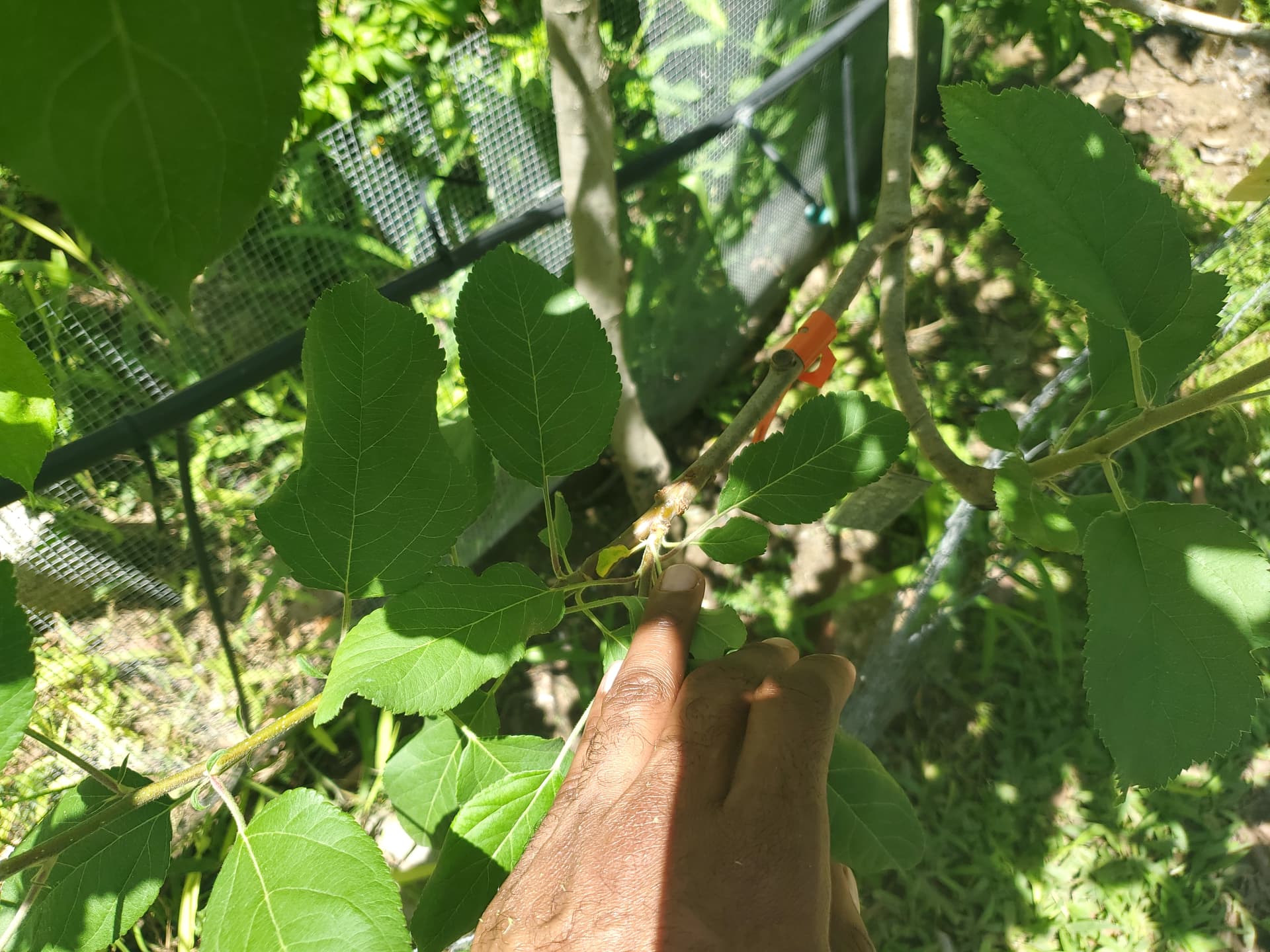The heavy bearing habit can be managed with pruning. It develops long hanging fruit spur branches that could be pruned back for bigger fruit. It seems to have a balanced growth habit when I don’t cut every inch of new growth to send out scion.