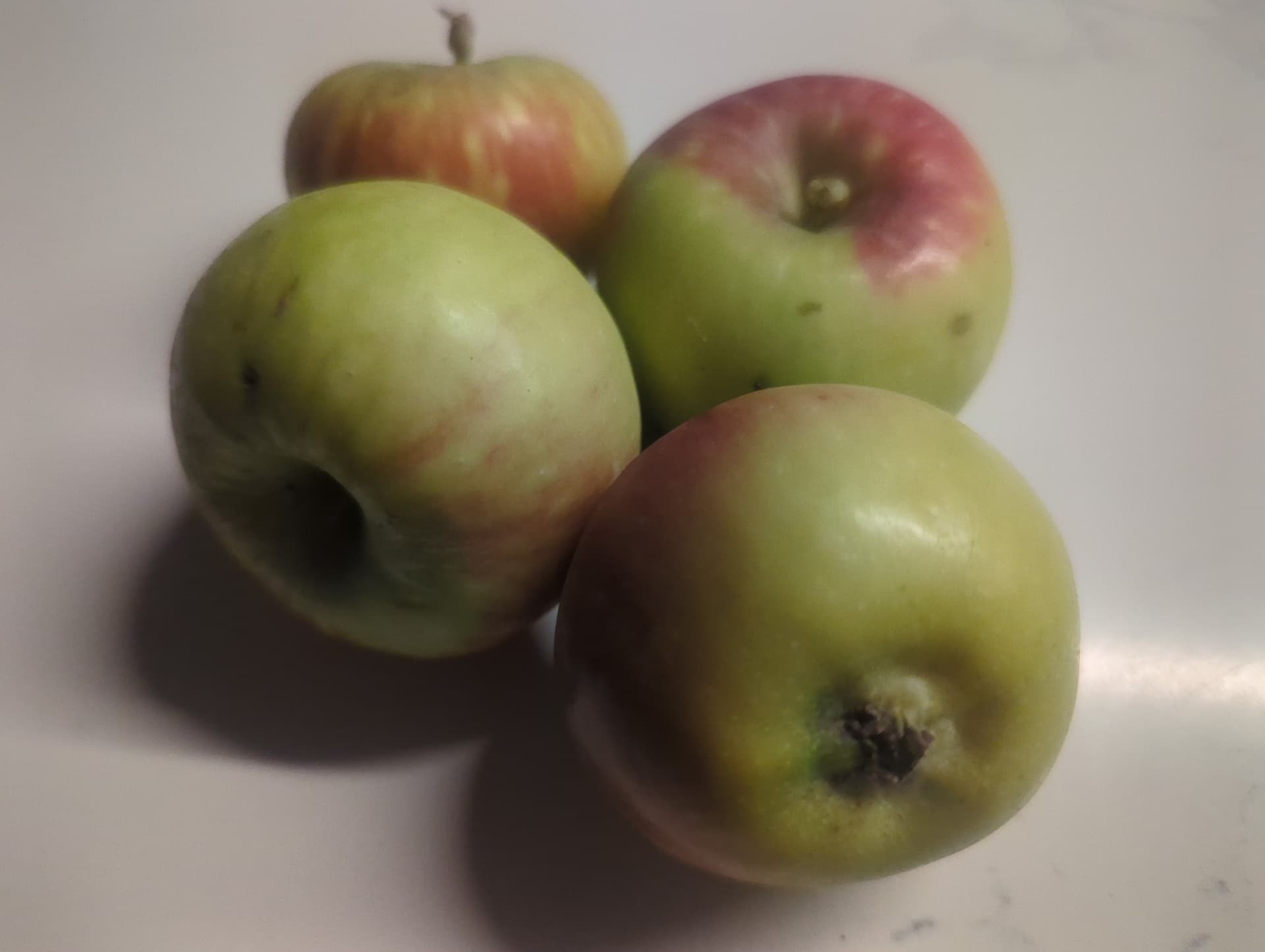 Very sweet, with a pleasant tartness and a hint of sharpness that adds complexity. Good crunchiness, though the skin is a little tough. That toughness probably contributes to their pest resistance, so I can live with it. A month or two ago, I said I think they have a similar taste and texture to pink lady apples, and the extra time on the tree has improved them from there.