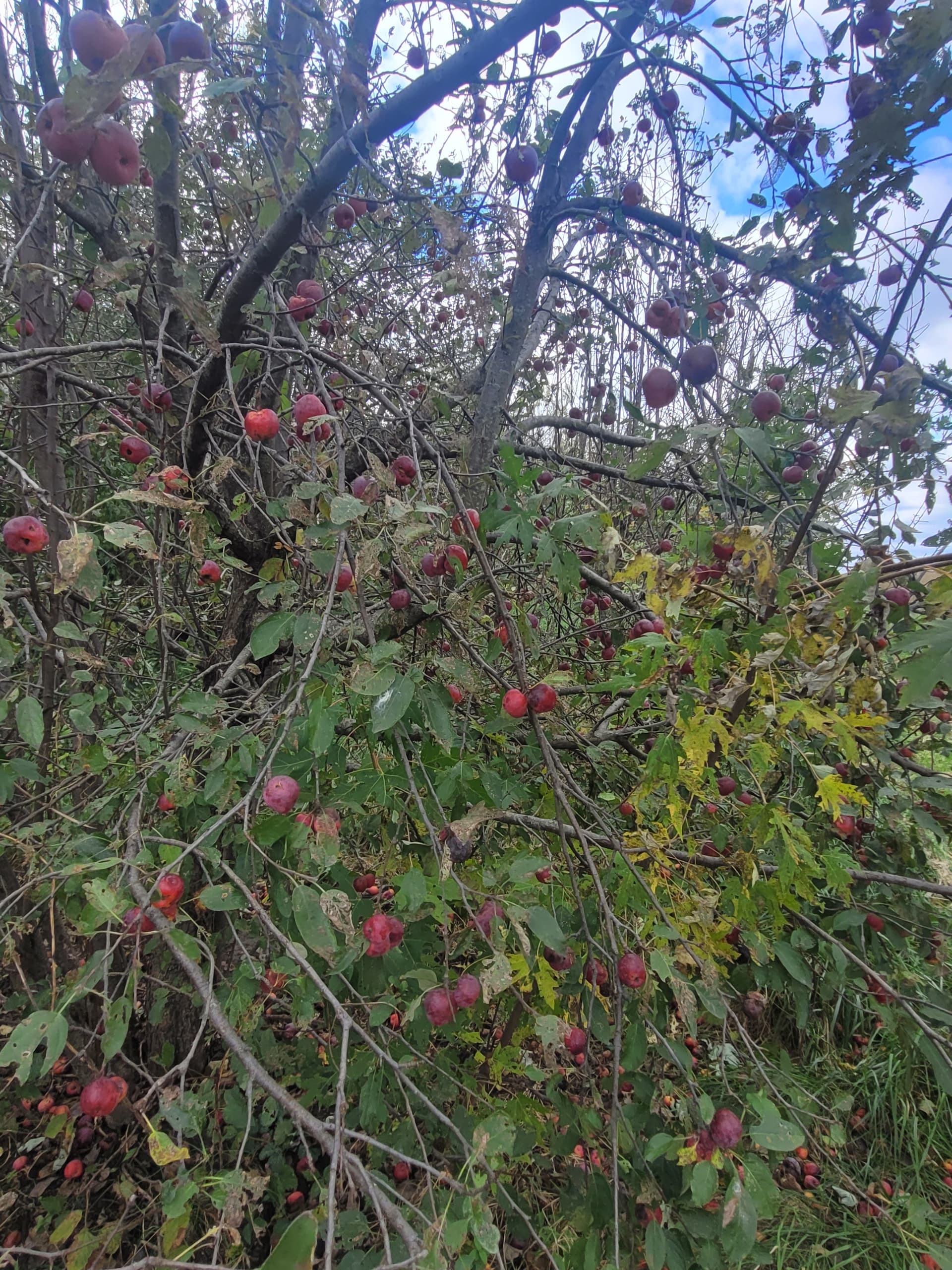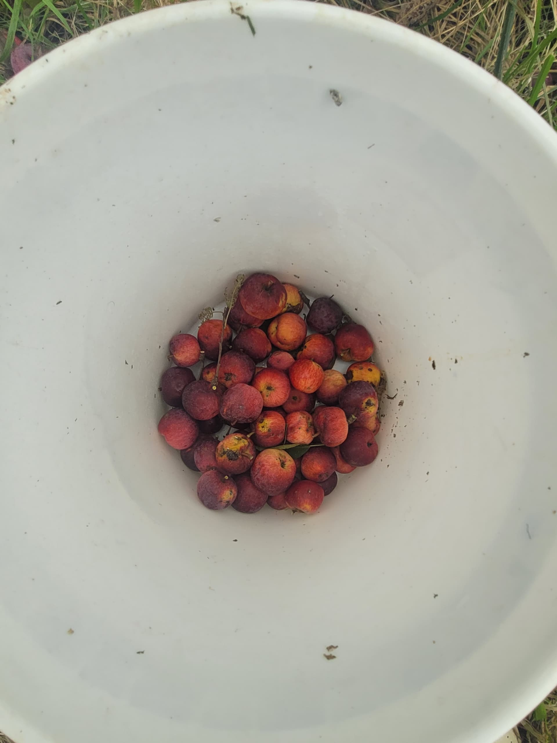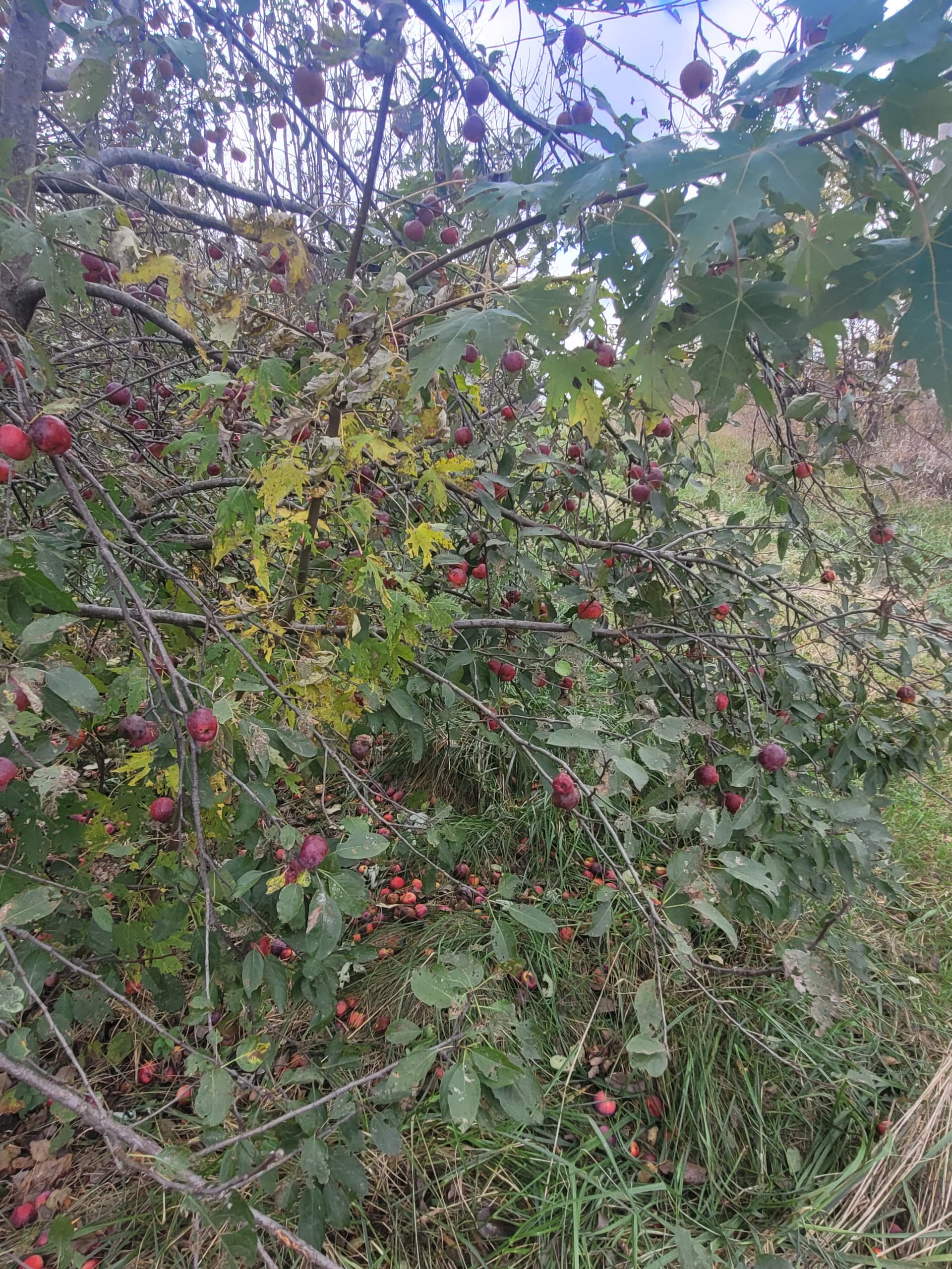 The sibling to Clarks crabapple is just starting to fall and today is Nov 1st. That is very handy to have another late ripening apple. The flavor is just now getting good.