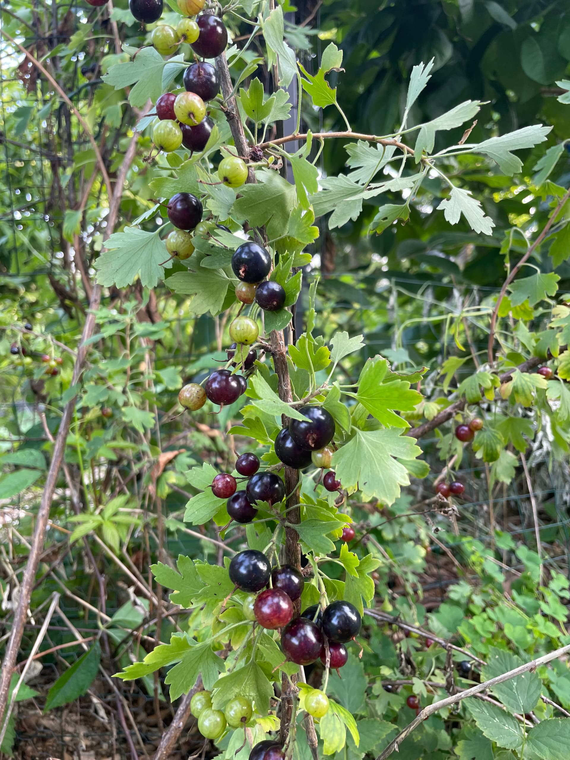 I don’t know if its due to the genetics, later ripening, or being on the north end of the taller black currant planting - but this year the regular black currants got an F for failed crop.