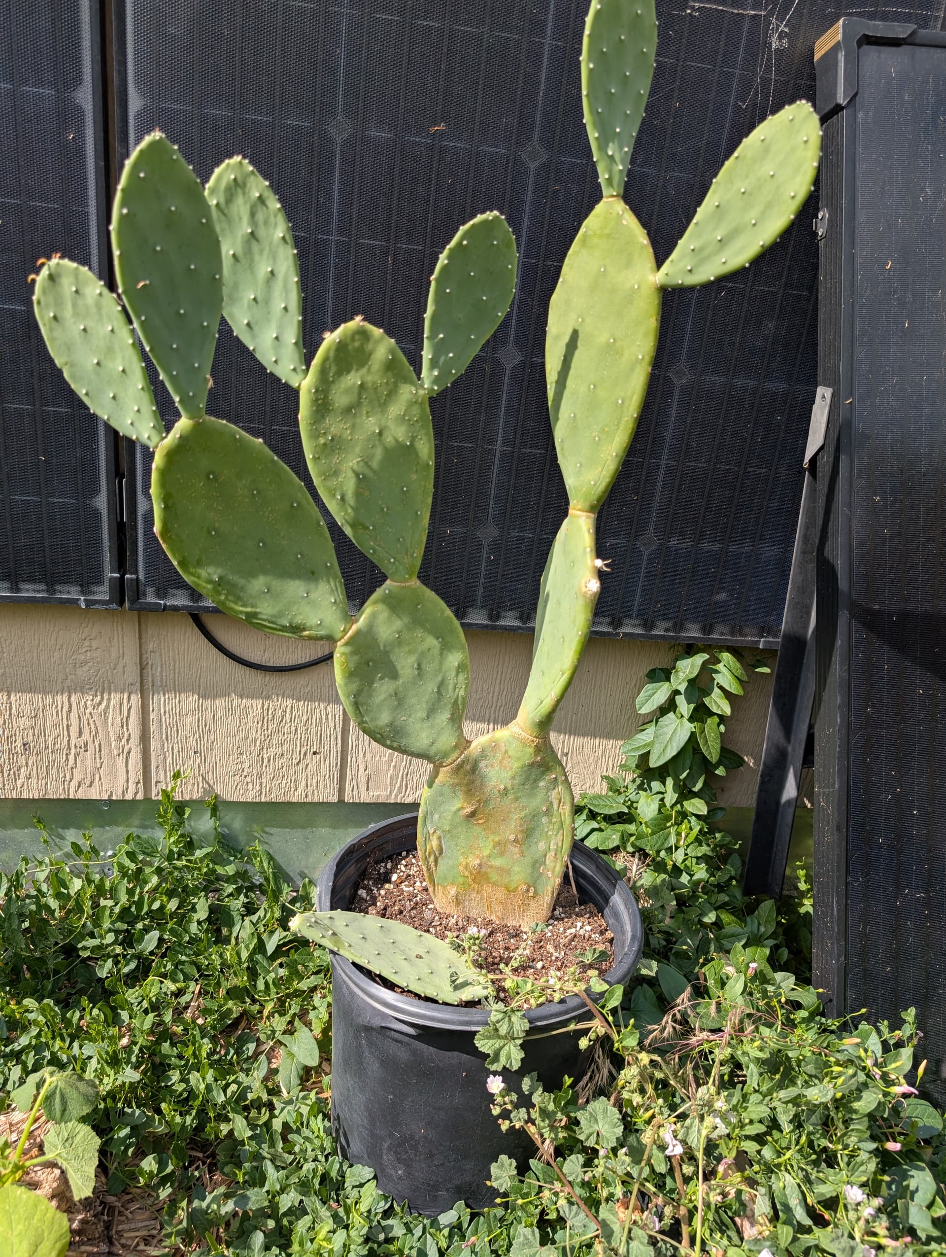 the spineless has gotten huge! again no flower or fruit but I could eat some pads soon. one was knocked loose during a wind storm and I’m about to try to root it to get another plant. all that from one pad. I love these plants, they are incredibly strong.