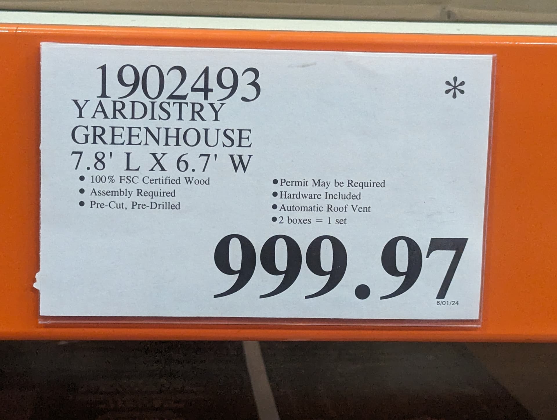 Any interested in a small nice looking green house at Costco. I got one a few months ago for $1500 and now is $990.