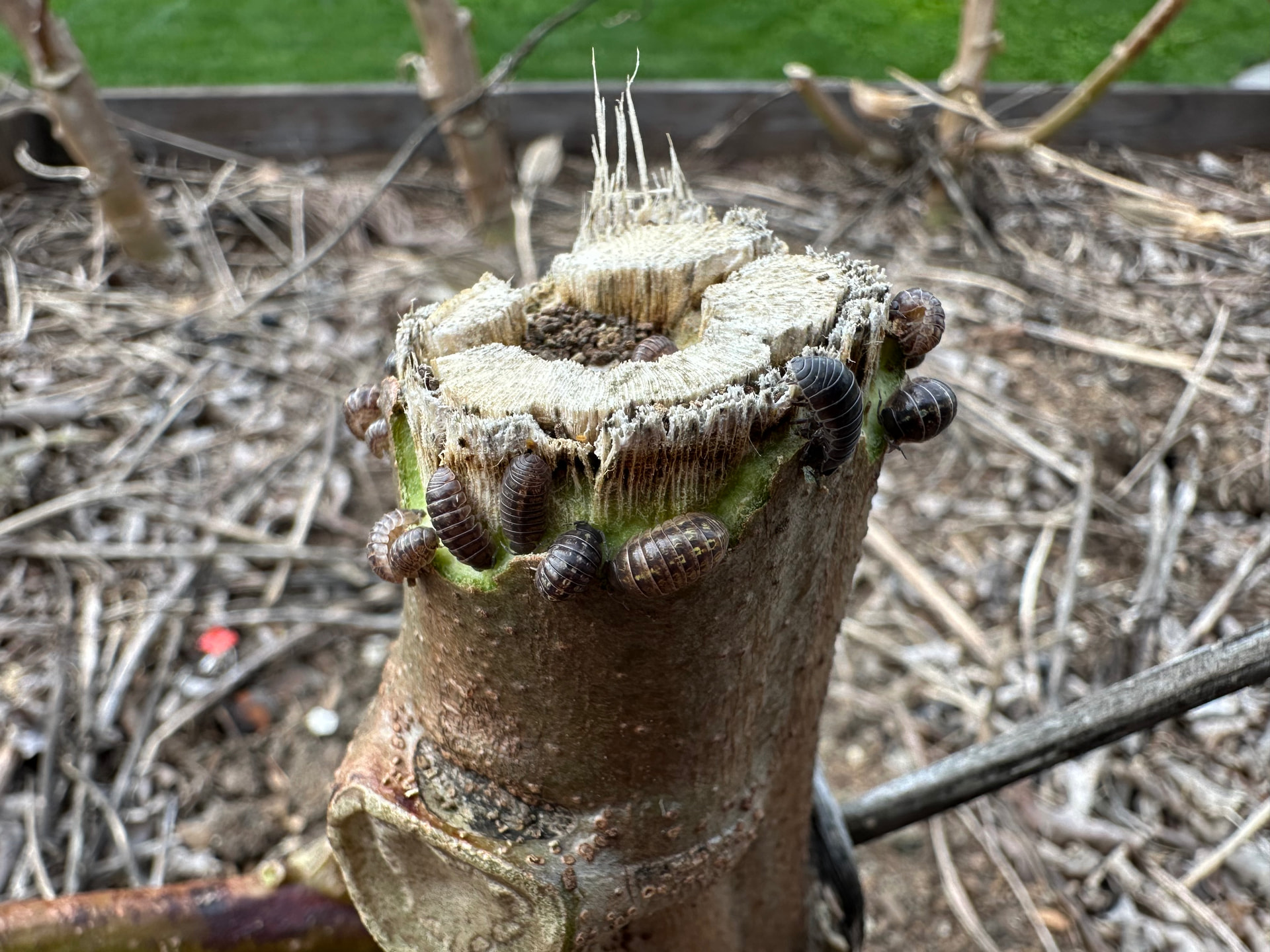 I had a sneaky suspicion they’re up to no good but now I have confirmation. This is Tree Okra from last year that I’m hoping can overwinter here in California. The bark is still green.