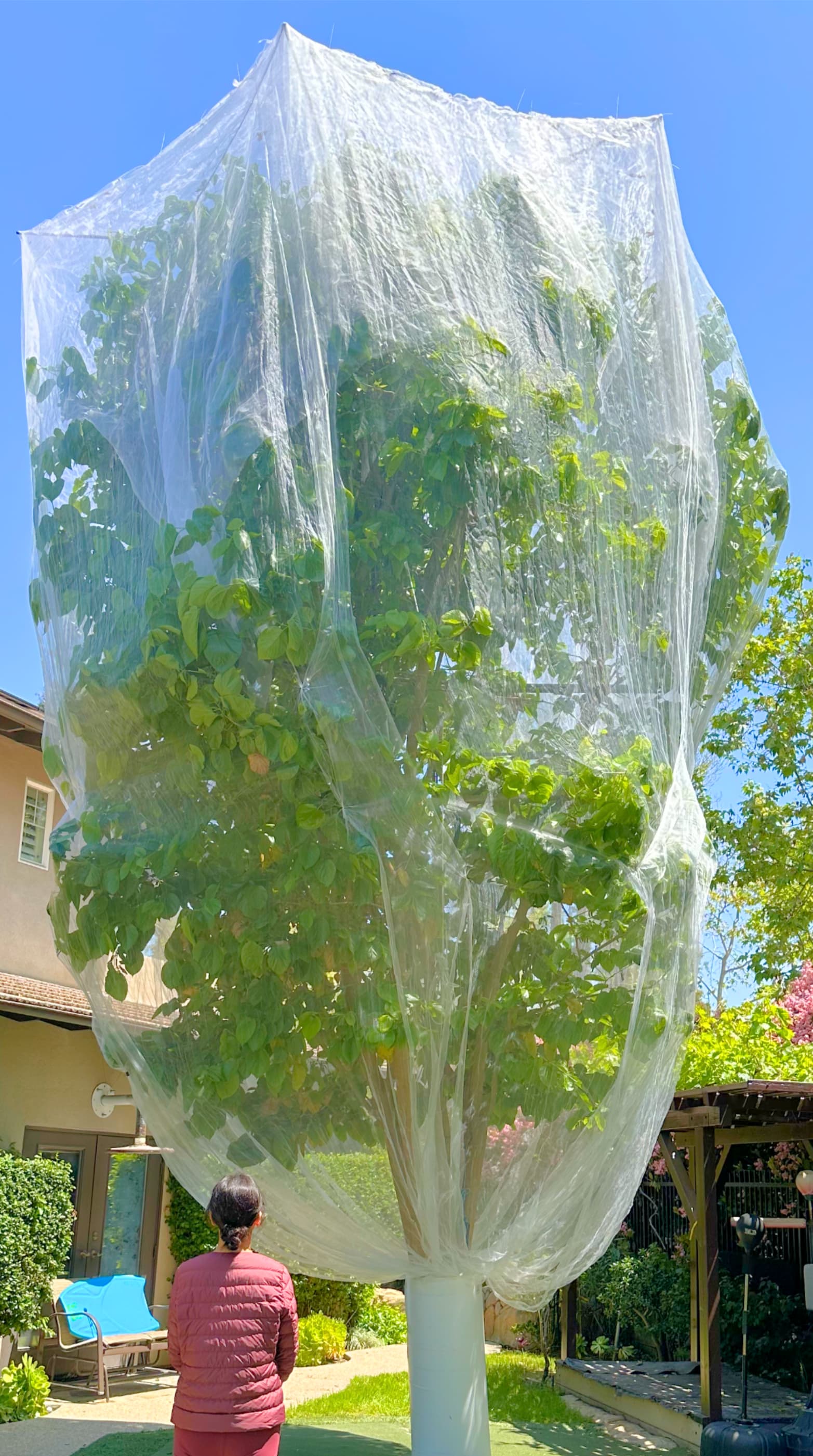 For a delicate fruit like mulberry, bird netting is not enough as fruit flies will lay eggs into every mulberry which will hatch into maggots that will ruin everything.