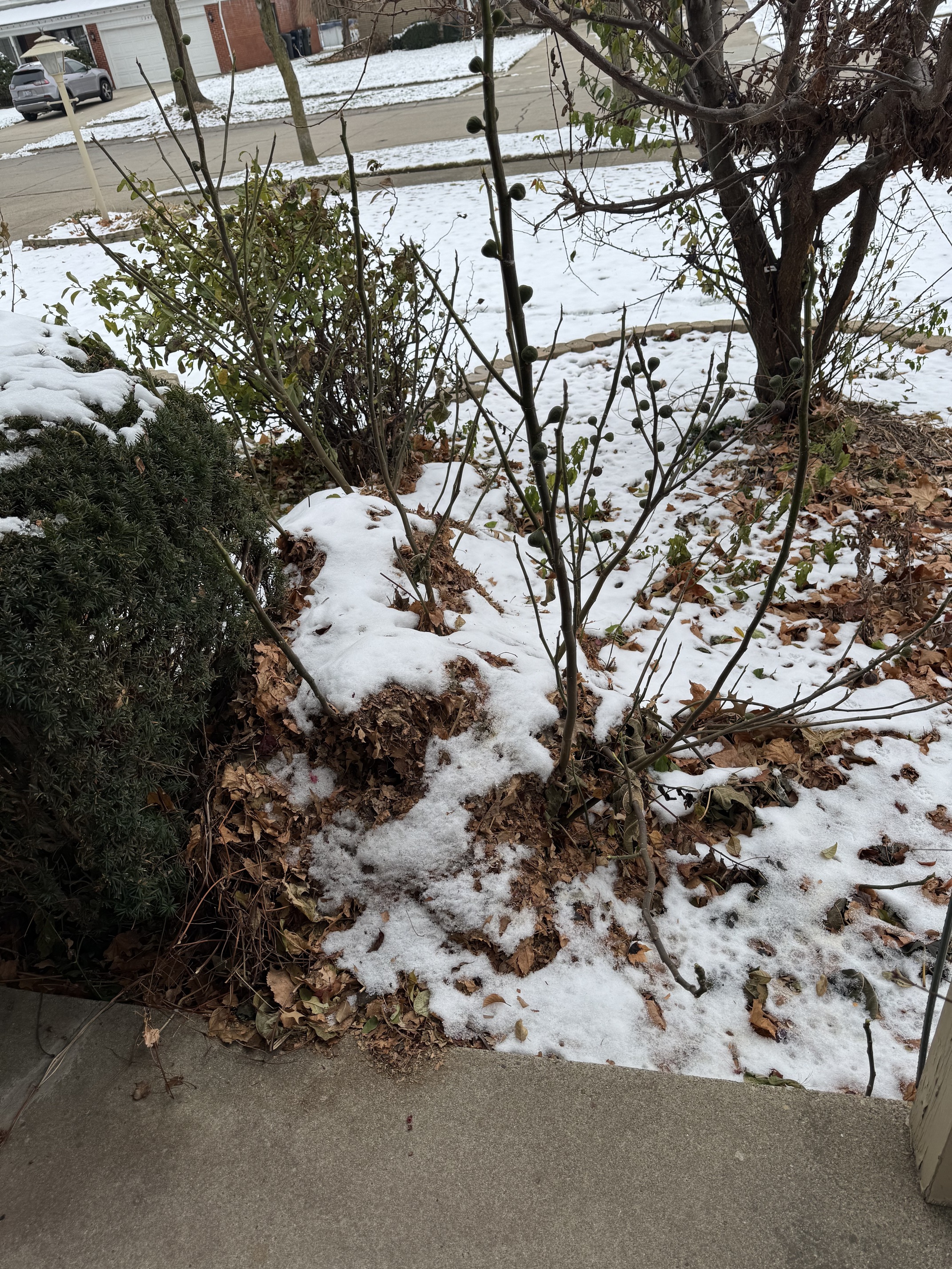 The last two years, I have put a wire cage around the fig, piled some big scoops of mulch a couple inches high on the bottom and then piled leaves on top filling the cage. Every now and then, if the leaves looked like they’d sunk, I’d pile more on so it was totally buried and the leaves were pretty packed. I actually think because the leaves were pretty dense it stayed reasonably dry inside.